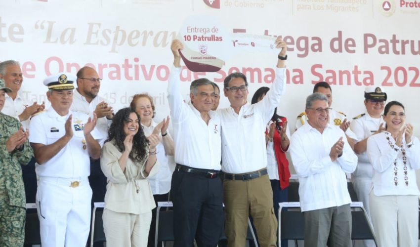 En el marco de la inauguración del puente «La Esperanza», el gobernador atestiguó también la entrega de 30 patrullas por parte de los gobiernos municipales de Altamira, Tampico y Madero a fin de fortalecer la capacidad operativa de la Guardia Estatal en la zona conurbada.