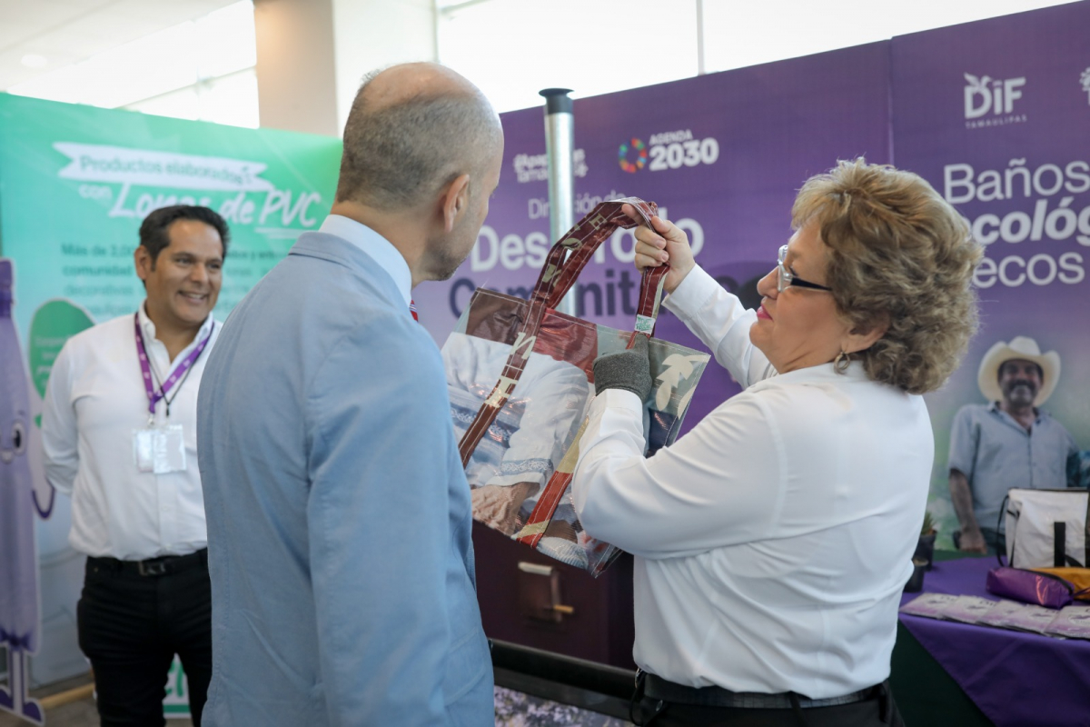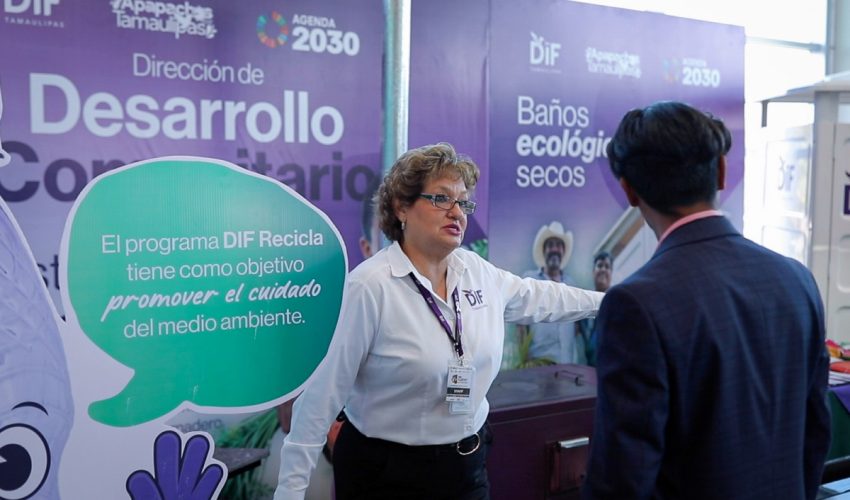 Tampico, Tamaulipas.- El Sistema DIF Tamaulipas, presidido por la doctora María de Villarreal, continúa contribuyendo a los objetivos de la Agenda 2030 de la Organización de las Naciones Unidas (ONU), a través de los programas DIF Recicla y Salud y Bienestar Comunitario, mediante los cuales impulsa la justicia social, la disminución de la pobreza, atiende la desigualdad económica y protege el medio ambiente.