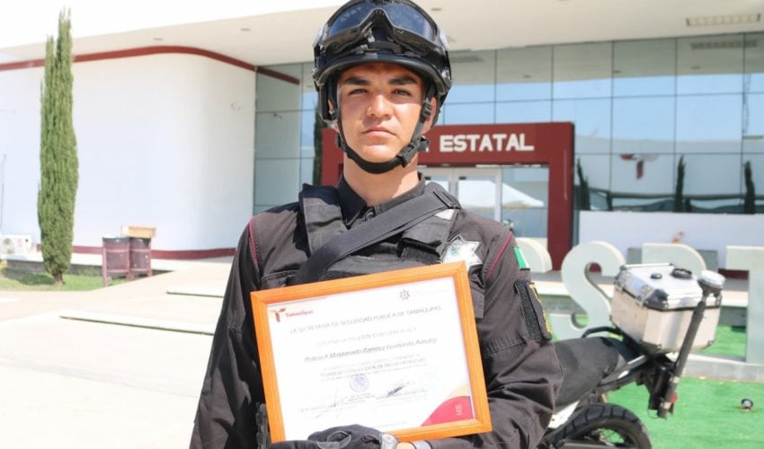 Ciudad Victoria, Tamaulipas. – Tras concluir su participación en el Curso Intensivo de Motopatrullaje, el policía A, Leonardo Maldonado Ramírez, expresó su reconocimiento y agradecimiento al gobernador de Tamaulipas, Américo Villarreal Anaya; y al secretario de Seguridad Pública del Estado, Sergio Hernando Chávez García, por brindarles la oportunidad de fortalecer sus habilidades operativas.