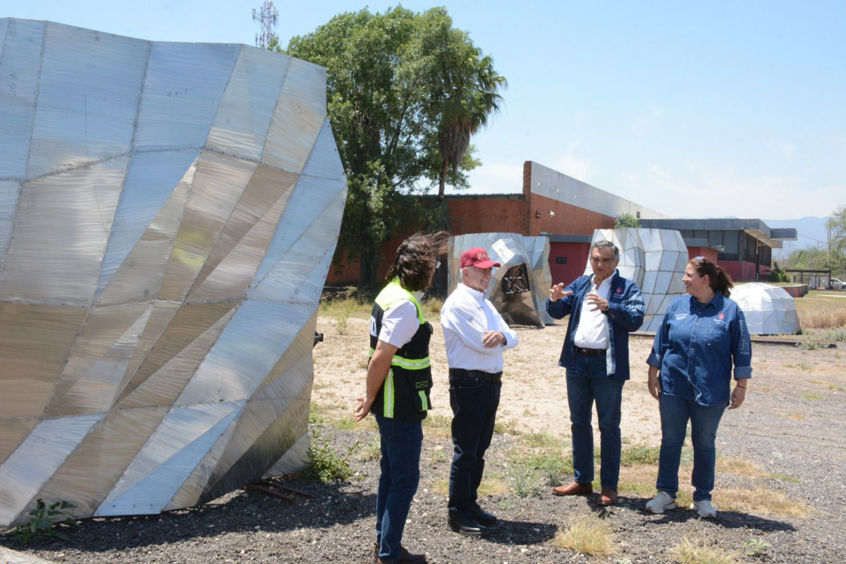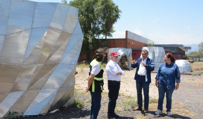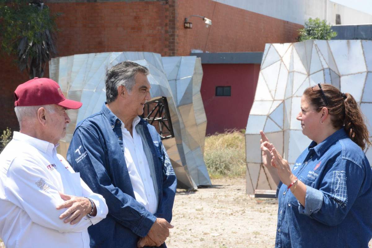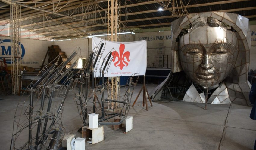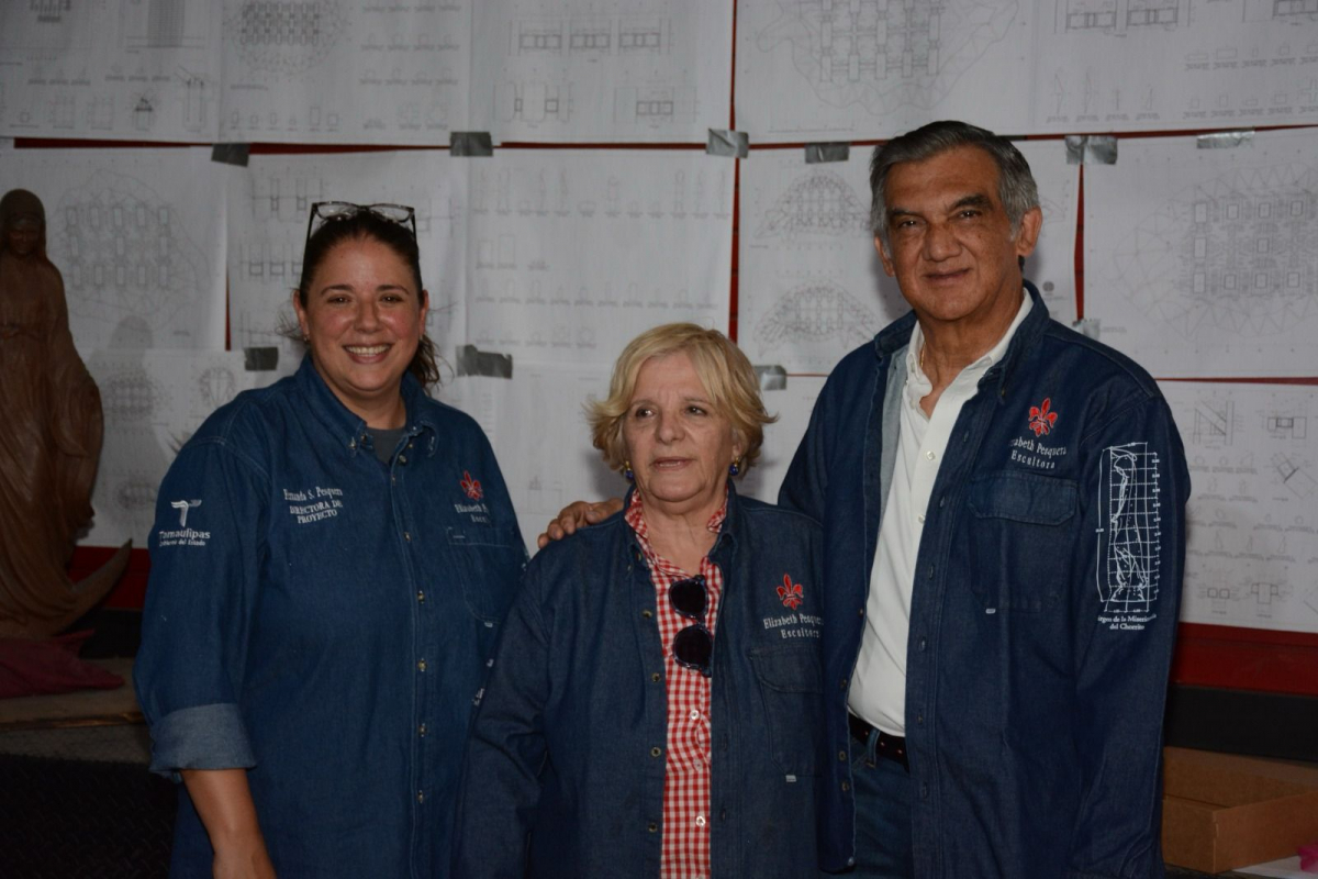 La escultora victorense Elizabeth Pesquera Caballero, acompañada por la directora del proyecto, Fernanda Saiz Pesquera, se mostró entusiasmada al informarle al gobernador que la gigantesca estructura se encuentra en la etapa de acabado.