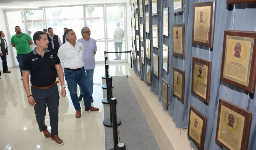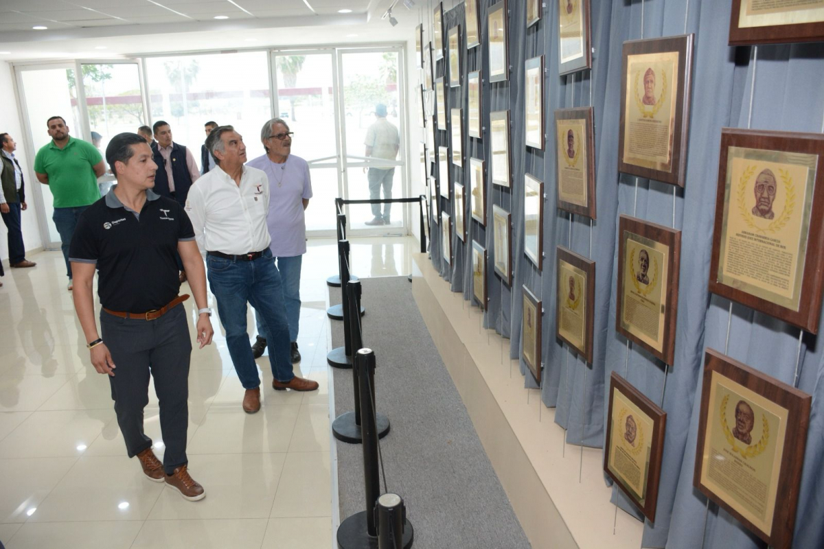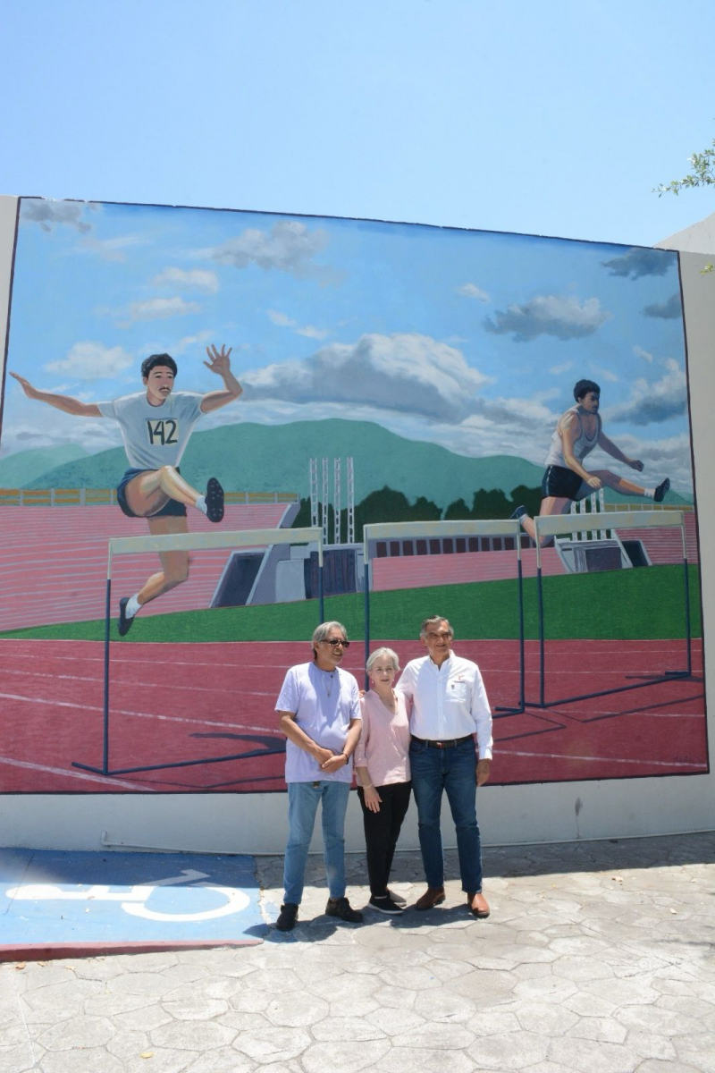 También este día, el gobernador y la presidenta del DIF visitaron el polideportivo de esta capital, en donde el artista victorense Aldo Ortiz pinta un mural en la entrada del área donde se ubica el Salón al Mérito Deportivo, con la imagen del exgobernador Américo Villarreal Guerra en su época como deportista.