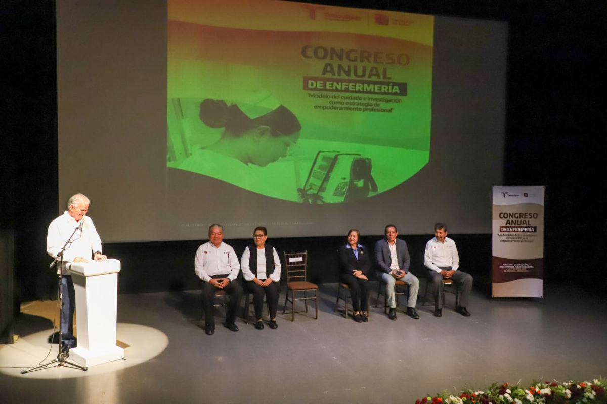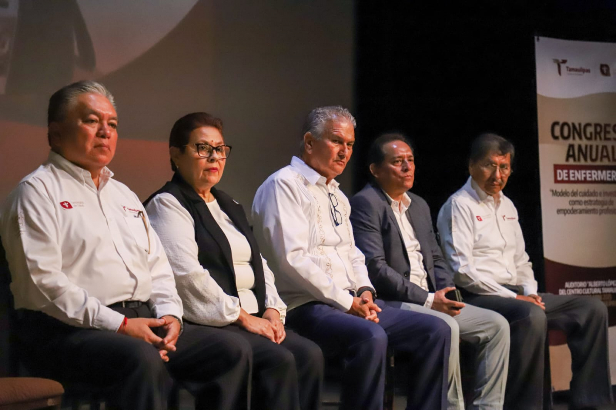 En representación del gobernador Américo Villarreal Anaya, el secretario de Salud, Vicente Joel Hernández Navarro, inauguró los trabajos de este evento académico, que, durante dos días, abordará el tema “Modelo de cuidado e investigación como estrategia de empoderamiento profesional”.