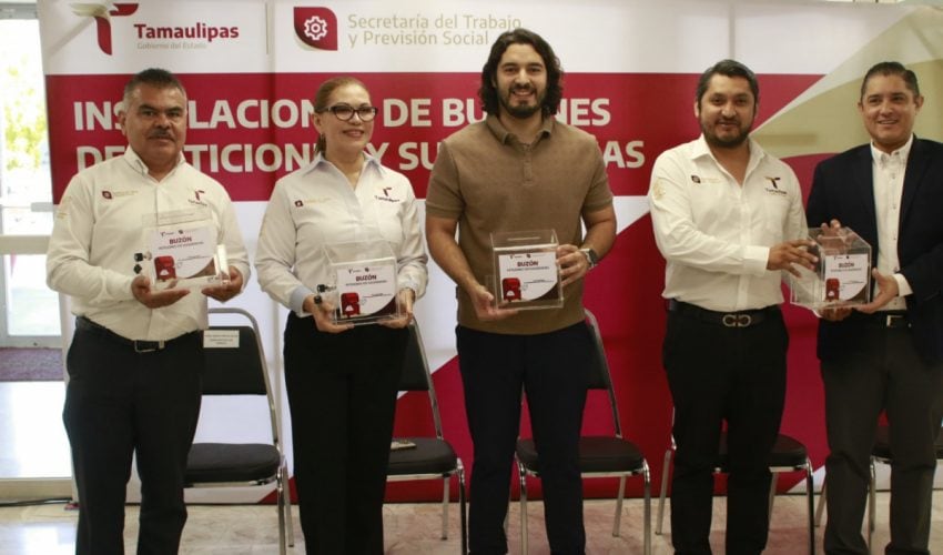Ciudad Victoria, Tamaulipas.- Para brindar una mejor atención a los usuarios de las Juntas de Conciliación y Arbitraje, ubicadas en las oficinas gubernamentales Tiempo Nuevo, la Secretaría del Trabajo y Previsión Social, que encabeza, Luis Gerardo Illoldi Reyes y siguiendo la visión humanista del Gobierno de la Transformación que dirige, Américo Villarreal Anaya, realizó la instalación de buzones de peticiones y sugerencias.