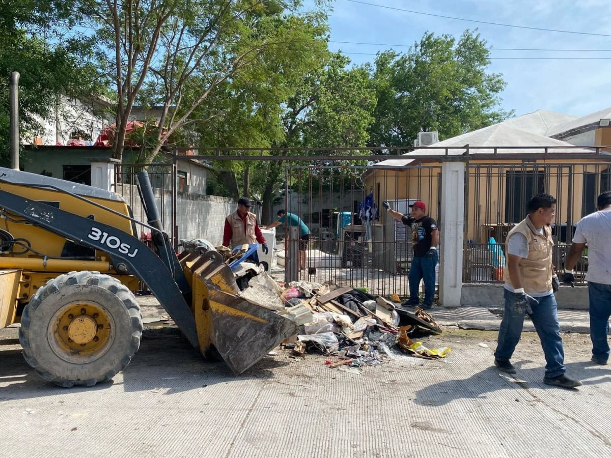 Reynosa, Tamaulipas.– En el tercer día de la brigada en Reynosa, realizada por el Gobierno de Tamaulipas, en la que participan la Secretaría de Bienestar Social, el Sistema DIF Tamaulipas, la Secretaría de Obras Públicas y el Ejército Mexicano, se mantienen las labores de apoyo a la población afectada por las inundaciones en este municipio.