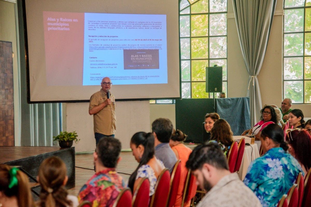 Explicó que la plática será un guía para convocatorias vigentes a nivel federal como las siguientes enlistadas: Escenarios IMSS- Cultura, que apoyará hasta 100 proyectos con 300 mil pesos; México Canta, dirigido a talentos musicales mexicanos y mexicoestadounidenses; Artes Escénicas en la Escuela, que otorgará 60 estímulos de hasta 250 mil pesos; Entornos sonoros, dirigido a compositores y compositoras musicales, con una bolsa de 600 mil pesos.