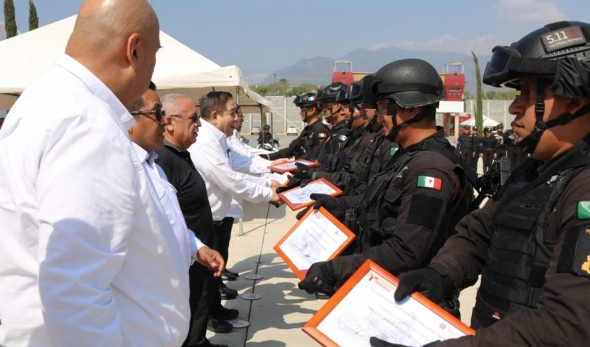 Durante la ceremonia, celebrada en la explanada del Complejo Estatal de Seguridad Pública, se realizó la entrega de constancias a cada uno de los elementos que acreditaron satisfactoriamente dicha formación.