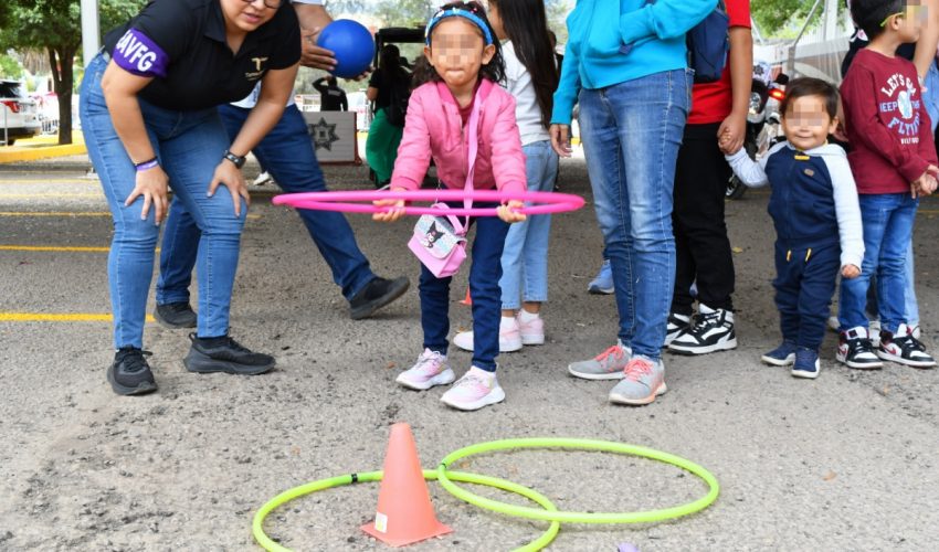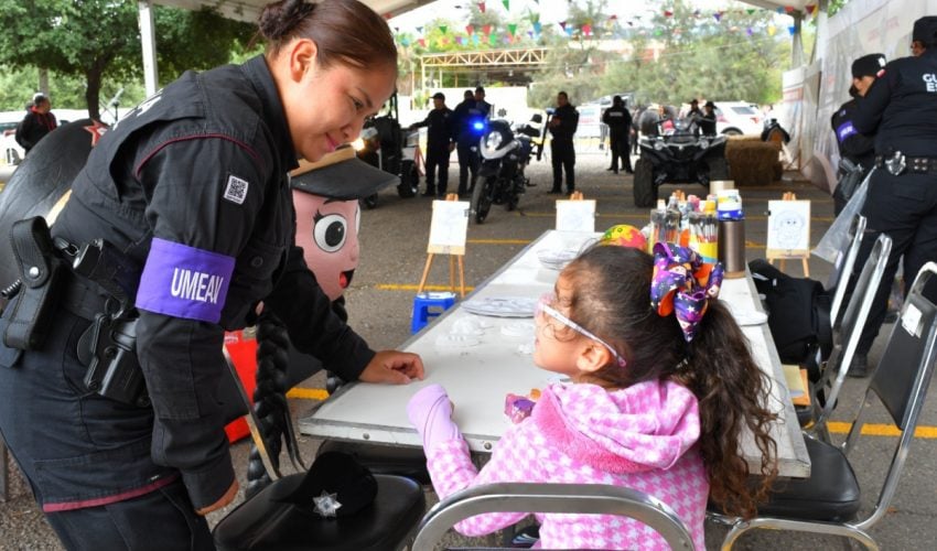 Este año, el stand de la SSPT contó con la participación de la Guardia Estatal de Género, cuyo personal ofreció dinámicas como juegos de preguntas y respuestas, boliche, aros de hula, pintacaritas y espacio de artes visuales.