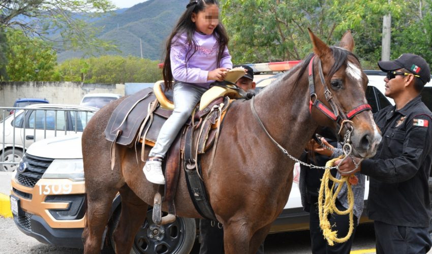 También, la Dirección de Agrupamientos Policiales realizó paseos a caballo y convivencia con los caninos de la Guardia Estatal.