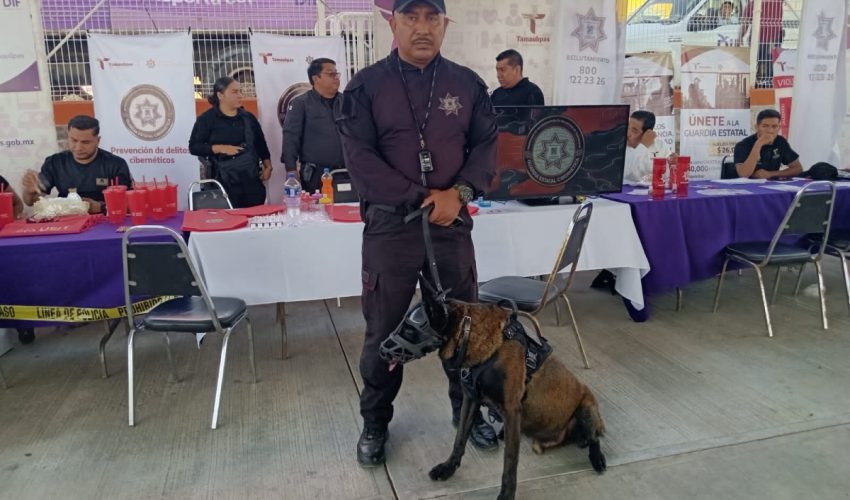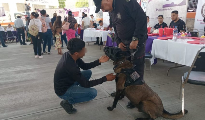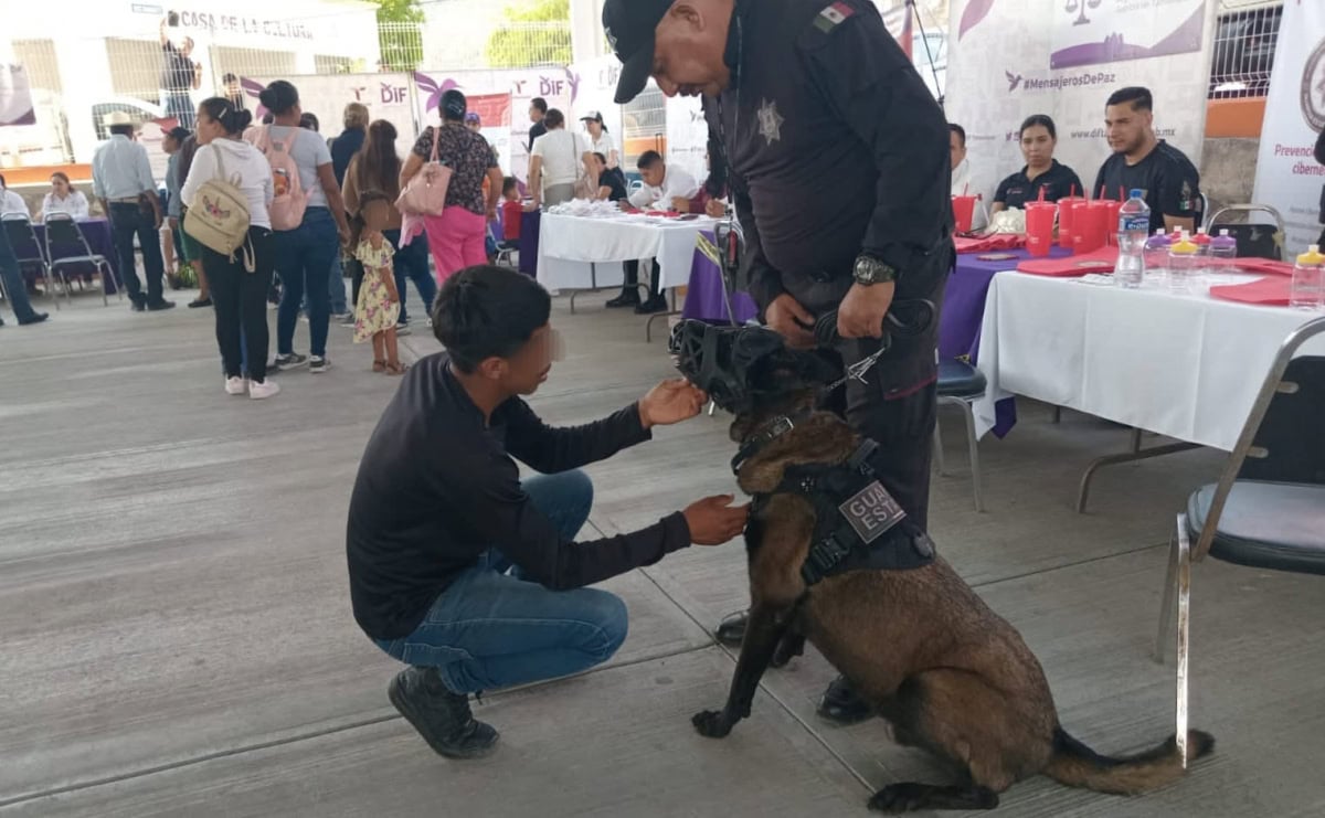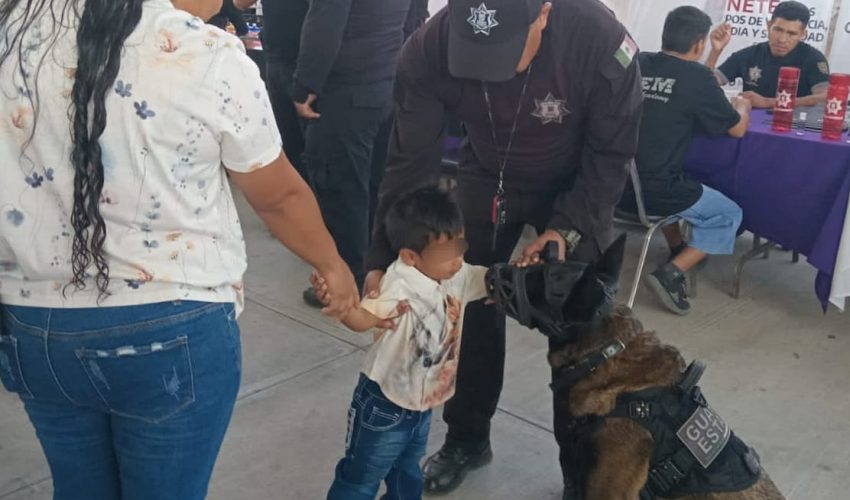 Agrupamiento canino de la Guardia Estatal convive con la ciudadanía en Brigada “Transformando Familias”