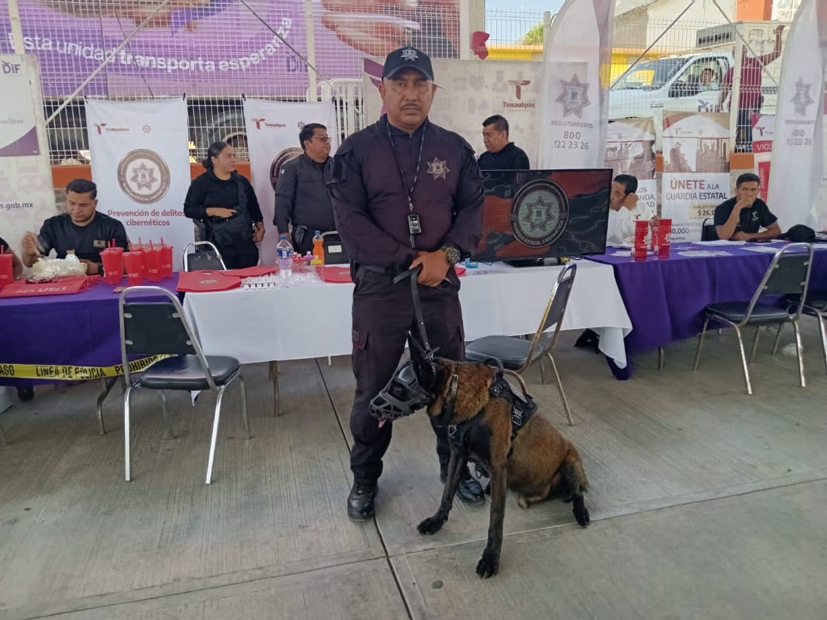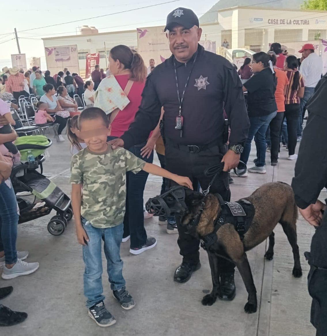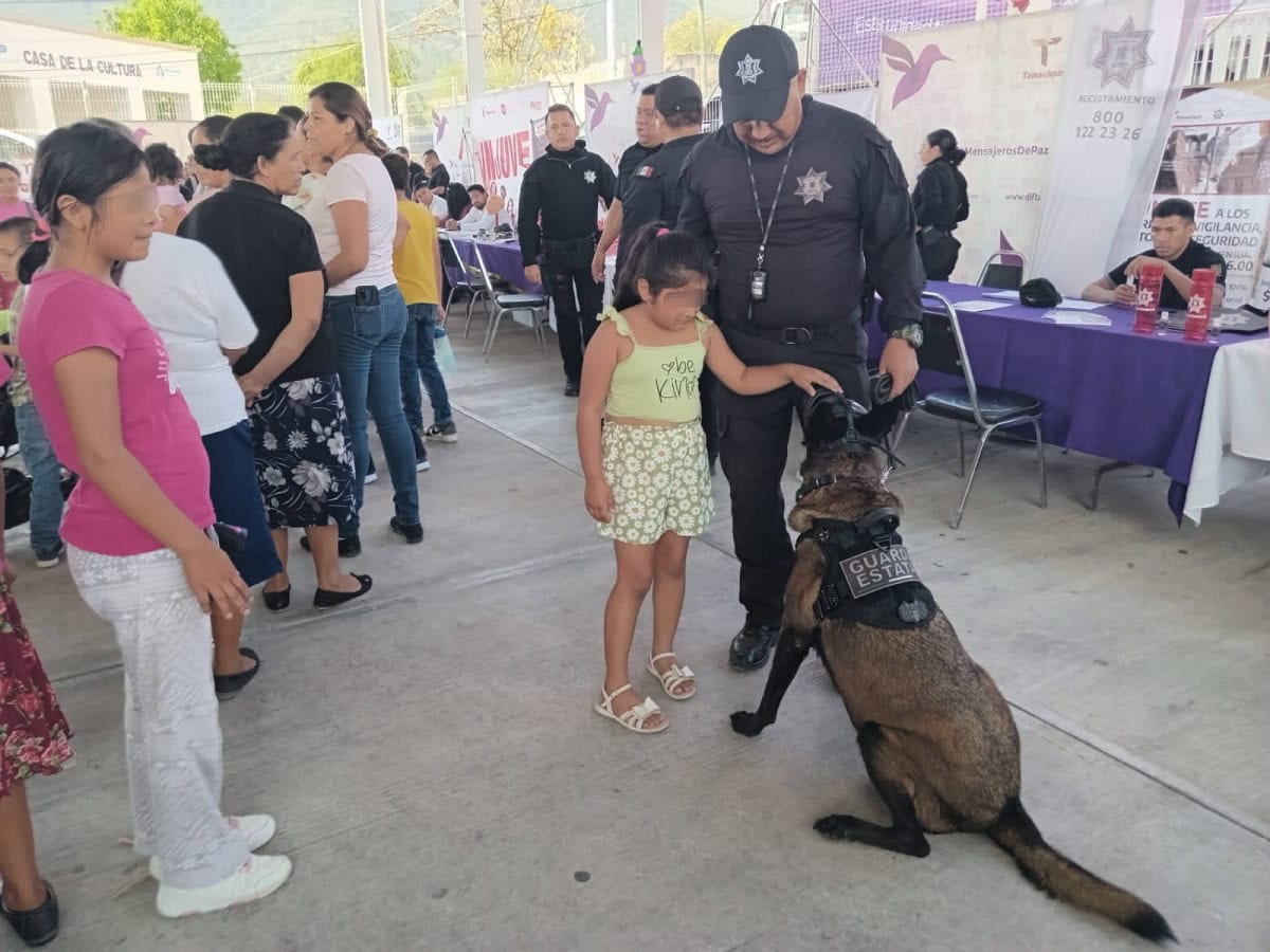 Bustamante, Tamaulipas.- Durante su asistencia a la Brigada “Transformando Familias” celebrada en el municipio de Bustamante, elementos del Agrupamiento Canino de la Guardia Estatal mantuvieron la proximidad y cercanía con asistentes a este evento.
