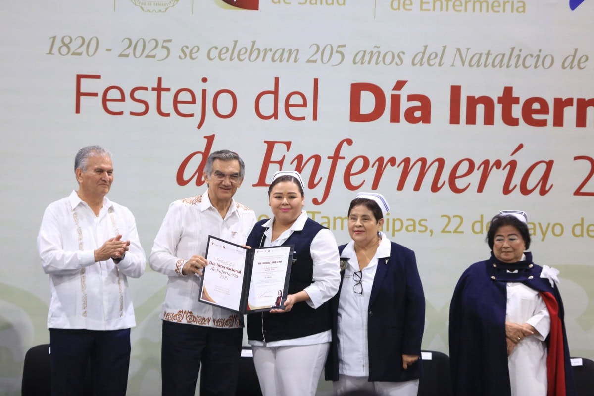 «Su liderazgo cercano, ético y sensible ha dignificado nuestra labor, impulsando políticas de salud pública que promueven mejores condiciones laborales, mayor capacitación profesional y un reconocimiento justo a quienes día a día brindamos cuidado y esperanza a la población tamaulipeca», expresó.