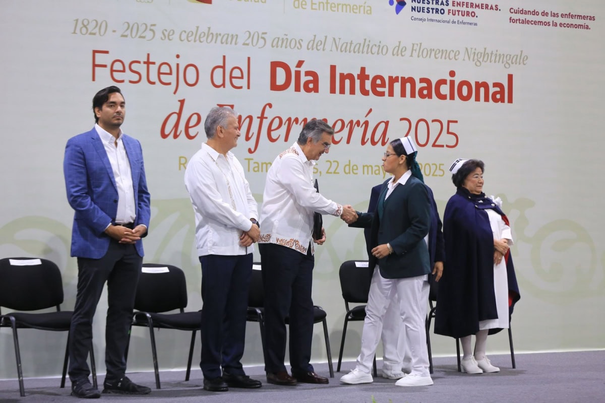 Al presidir el festejo del Día Internacional de la Enfermería, que congregó a cerca de 3 mil profesionales de la salud, en el Centro de Convenciones de Reynosa, acompañado por Vicente Joel Hernández Navarro, secretario de Salud, e Irma Barragán Alvarado, subsecretaria de Enfermería, el gobernador del Estado destacó el momento trascendente que vive el sistema de salud de nuestro país con el modelo IMSS-Bienestar, en donde la enfermería juega un papel importantísimo y sustantivo.