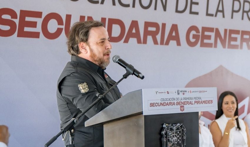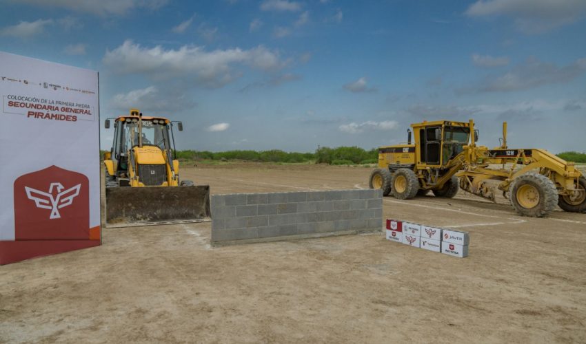 En representación del gobernador Américo Villarreal Anaya, el secretario de Educación de Tamaulipas, Miguel Ángel Valdez García, y el alcalde reynosense, Carlos Peña Ortiz, colocaron la primera piedra de la nueva Secundaria General Pirámides, que se construirá en el fraccionamiento del mismo nombre en este municipio.