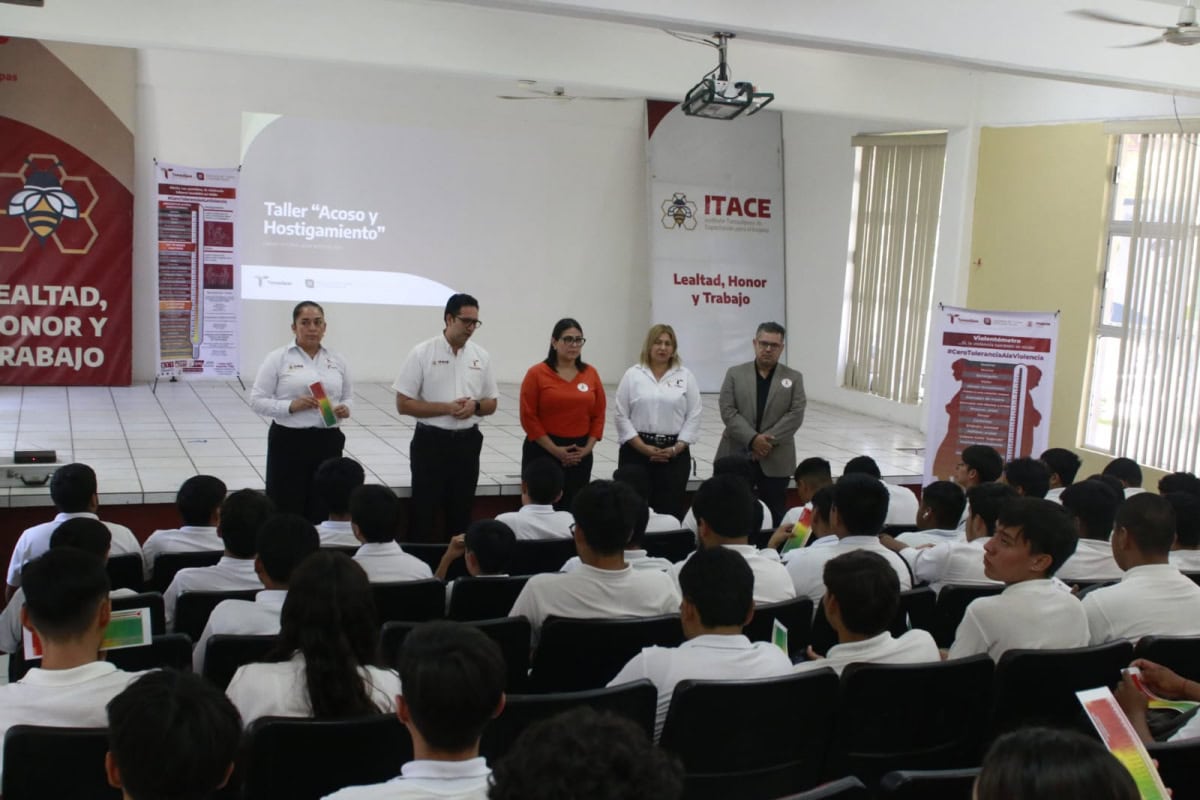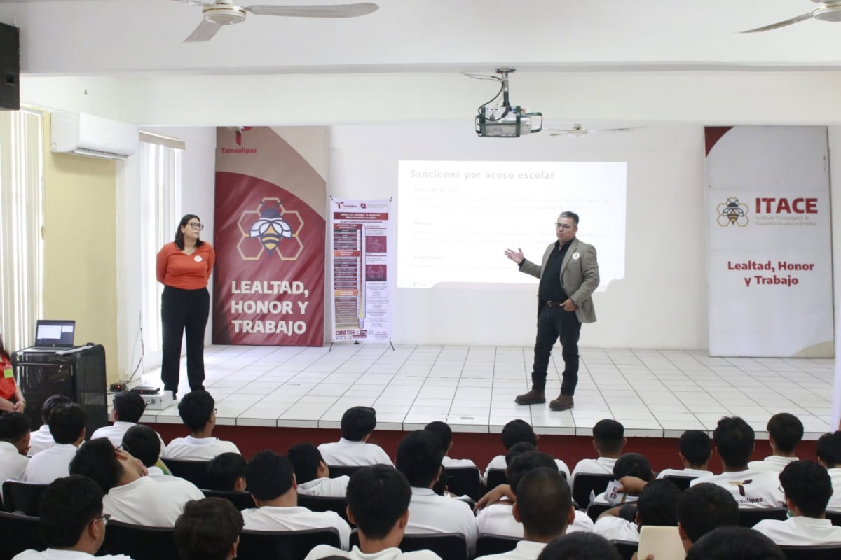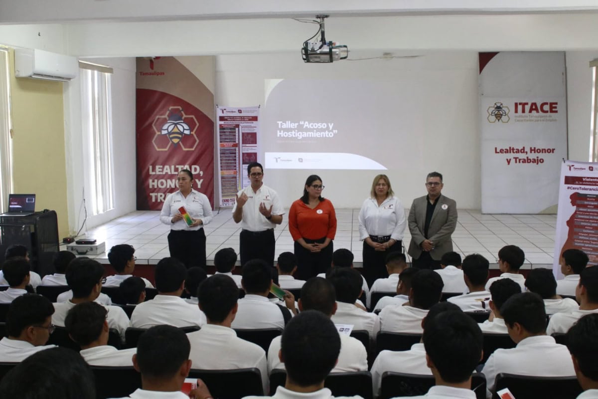 Ciudad Victoria, Tamaulipas.- La Secretaría del Trabajo y Previsión Social del Estado de Tamaulipas llevó a cabo el taller denominado “Acoso y Hostigamiento”, dirigido a estudiantes del Instituto Tamaulipeco de Capacitación para el Empleo (ITACE), con el propósito de fortalecer espacios educativos seguros, libres de violencia y con enfoque de igualdad.