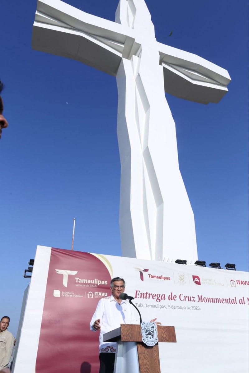 Tula, Tamaulipas. – El gobernador Américo Villarreal Anaya entregó al Pueblo Mágico de Tula la Cruz Monumental de La Esperanza, la más grande de México, magna obra que contribuirá a fortalecer y promover a esta región de Tamaulipas, como uno de los destinos turísticos religiosos más importantes del país.