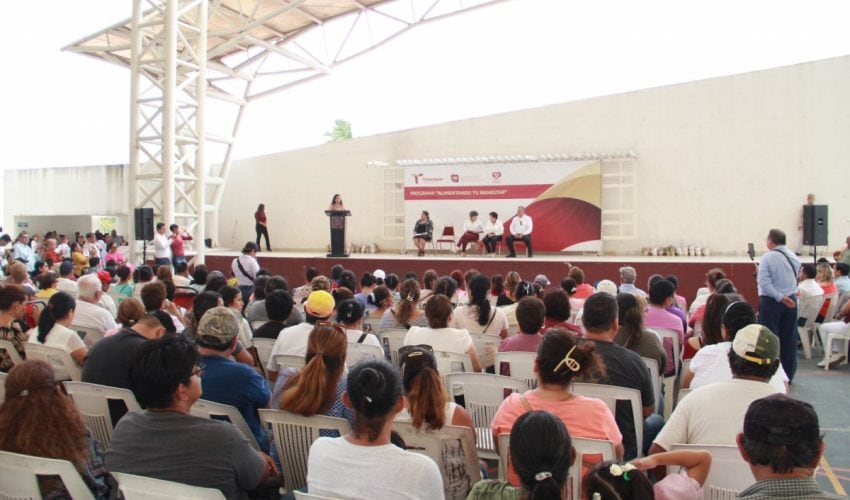 Antes de la entrega de los apoyos sociales del programa “Alimentando tu Bienestar”, Casas González dio un saludo a las autoridades y al público presente; y dijo que es un honor trabajar en un gobierno que coloca a las personas en el centro de cada acción, con un sentido humanista  para la atención a sus necesidades.