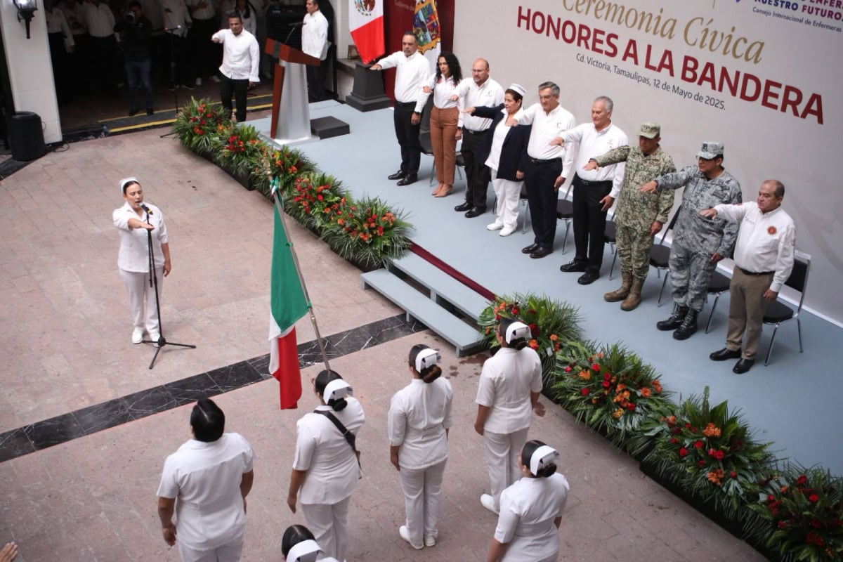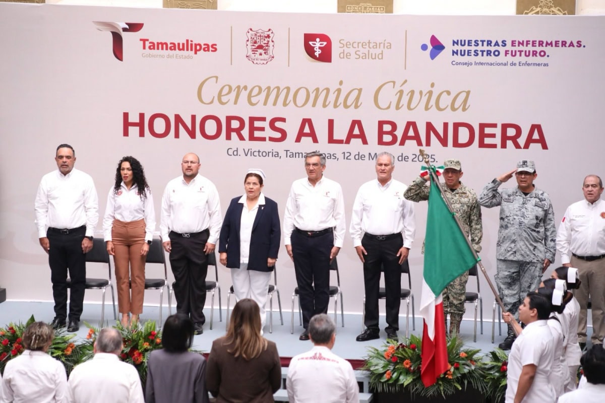 También acompañaron al gobernador en esta ceremonia cívica: Héctor Joel Villegas González, secretario general de Gobierno; diputada Cynthia Jaime Castillo, presidenta de la Mesa Directiva del Congreso; diputado Víctor Manuel García Fuentes, presidente de la Comisión de Salud; magistrado Hernán de la Garza Tamez, presidente del Supremo Tribunal de Justicia; general Enrique García Jaramillo, comandante de la 48 Zona Militar, y el general Francisco Alvarado Terán, coordinador de la Guardia Nacional en Tamaulipas, además de funcionarios del gabinete estatal y personal de enfermería de diferentes unidades médicas.