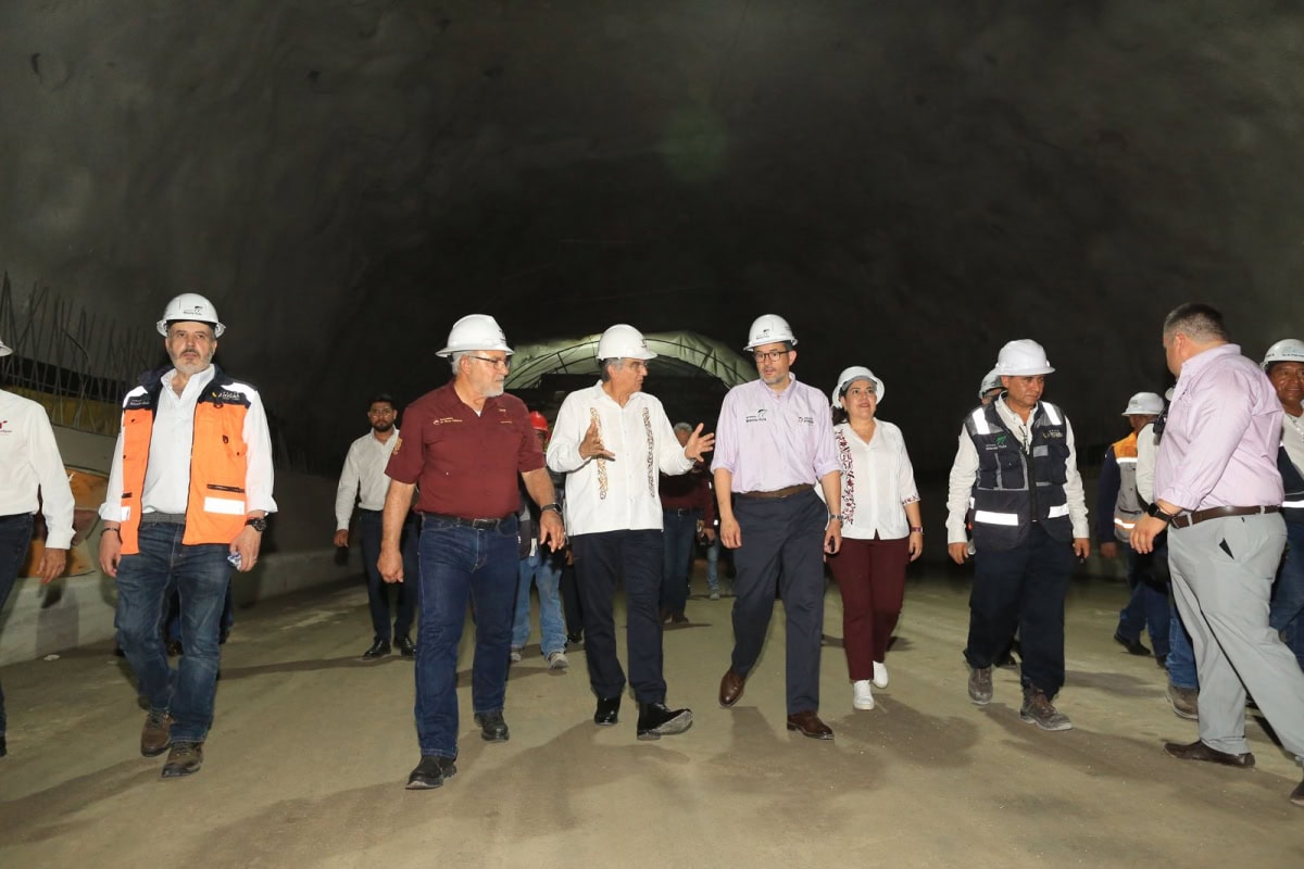 Al continuar el recorrido ya en el túnel que lleva el nombre del exgobernador Américo Villarreal Guerra, la explicación estuvo a cargo del ingeniero José Luis Amozoqueña, quien dio a conocer que el revestimiento definitivo del interior de la obra registra un avance del 70 por ciento. El director de la construcción del túnel agregó que hay 400 trabajadores para concluir en el tiempo previsto y detalló que, a la fecha, no se ha registrado ningún accidente fatal, a pesar de la magnitud que ha implicado la construcción de uno de los túneles más largos del país.
