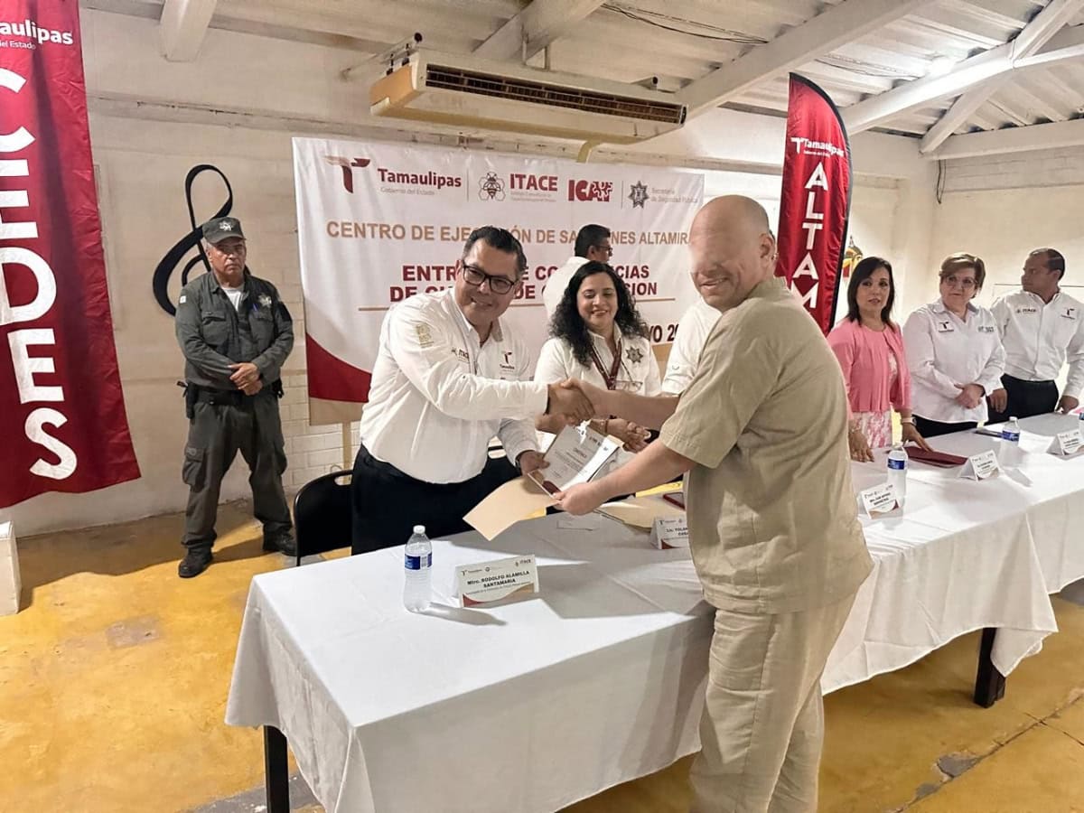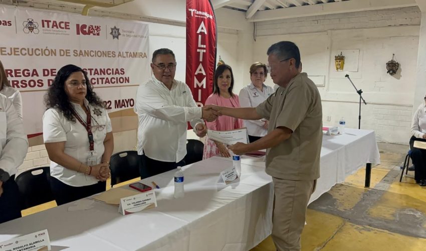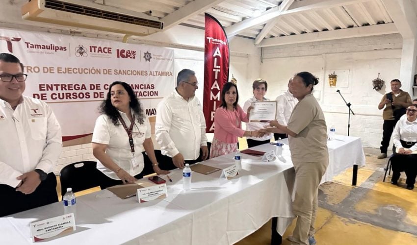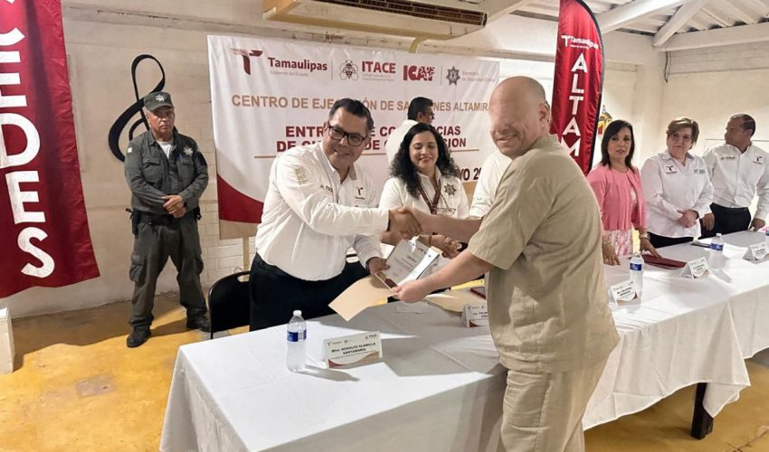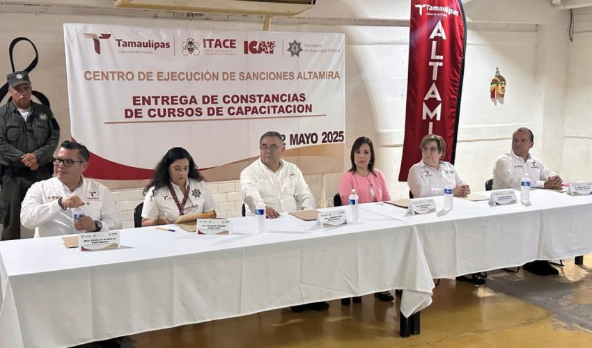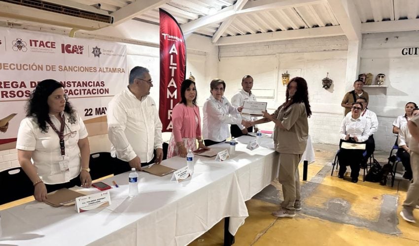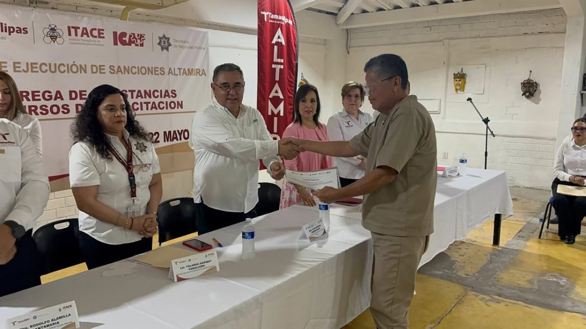 La ceremonia de entrega de constancias contó con la presencia de la directora general del ITACE, Claudia Anaya Alvarado; el subsecretario de Ejecución de Sanciones y Reinserción Social, Juan Antonio Sánchez Ruiz; la rectora de la Universidad Tecnológica de Altamira, Mara Grassiel Acosta González; la directora del CEDES Altamira, Yolanda Garibay Caballero; y Omar Guadalupe Castañón Salazar, subdirector general del Sistema ITACE.