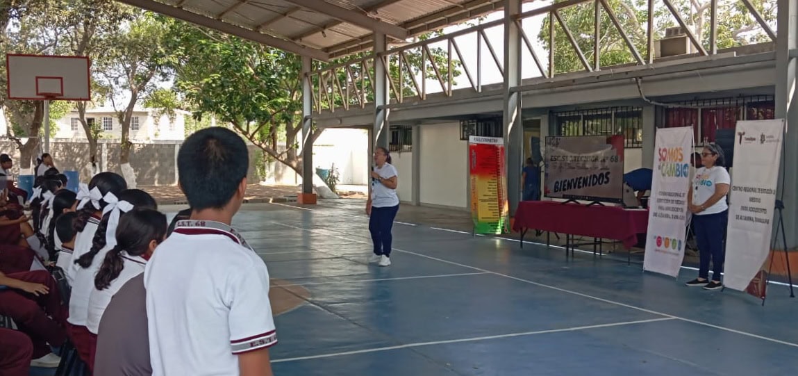 Altamira, Tamaulipas.- Como parte del programa establecido en el Centro Regional de Ejecución de Medidas para Adolescentes en materia de prevención del delito, personal del centro impartió pláticas a estudiantes de la Escuela Secundaria General Número Cuatro y la Técnica 68 “Tirso Saldívar Acevedo” del municipio de Altamira.