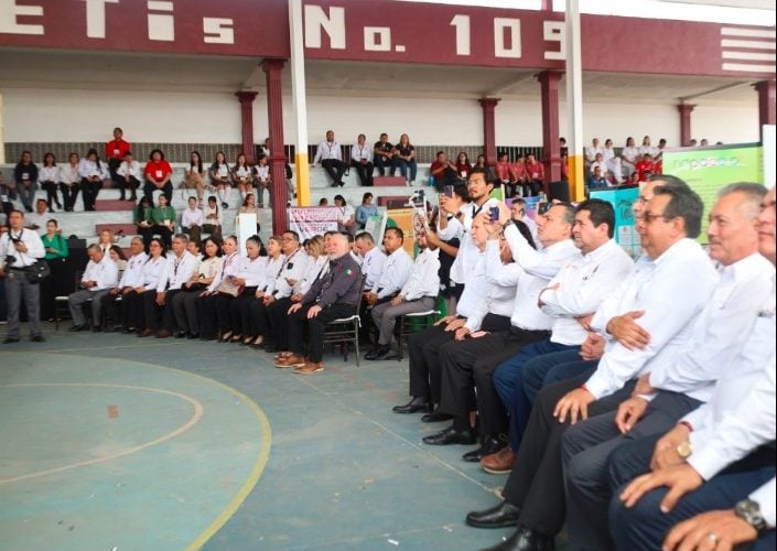 El presidium también estuvo integrado por el presidente municipal de Ciudad Madero, Erasmo González Robledo; Olegario Muñiz Cura, coordinador de la DGETI en Tamaulipas; Julio Martínez Bournes, director general del COTACyT; Saúl Cesáreo, enlace estatal de SEMS; Juan Dionisio Cruz, director del Instituto Tecnológico de Ciudad Madero, y la diputada Úrsula Salazar, entre otras autoridades.