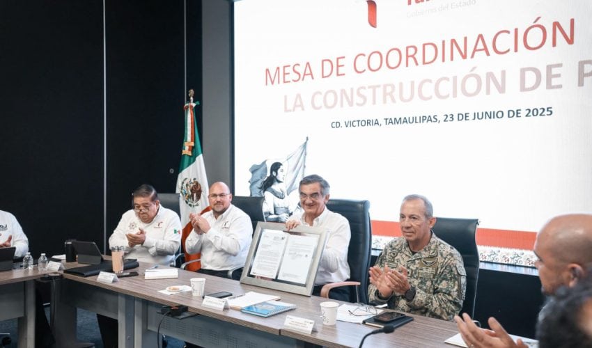 Ciudad Victoria, Tamaulipas.- El gobernador Américo Villarreal Anaya recibió en la Mesa de Coordinación para la Construcción de Paz a ejecutivos de Hyundai Glovis México y Mota-Engil, a fin de evaluar el avance de aspectos logísticos, de seguridad y planeación para el inicio de operaciones del Puerto del Norte, en el municipio de Matamoros.