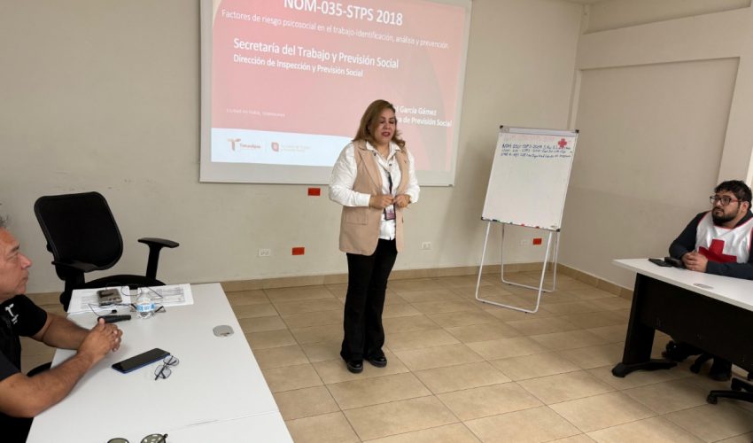 Ciudad Victoria, Tamaulipas.- Con el objetivo de fomentar un entorno laboral saludable y proteger el bienestar emocional del personal de la Cruz Roja, la Secretaría del Trabajo y Previsión Social de Tamaulipas, que encabeza Luis Gerardo Illoldi Reyes, a través de la Dirección de Inspección y Previsión Social, impartió una capacitación especializada sobre la NOM-035-STPS-2018, relativa a los factores de riesgo psicosocial en el trabajo.