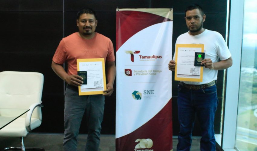 Ciudad Victoria, Tamaulipas.- La Secretaría del Trabajo y Previsión Social, que dirige Luis Gerardo Illoldi Reyes, a través de la Subsecretaría de Empleo y Previsión Social, guiada por Carolina Iveth Martínez Molano, realizó la entrega oficial de sobres de viaje a dos trabajadores tamaulipecos contratados para laborar en el sector agrícola de Canadá, como parte del Programa de Trabajadores Agrícolas Temporales (PTAT).