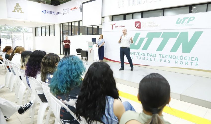 Reynosa, Tamaulipas.– Para que las y los estudiantes cuenten con mejores herramientas para su desarrollo académico en el ámbito de las ciencias e ingenierías, alumnas de diversas carreras que integran el Club STEM (Ciencia, Tecnología, Ingeniería y Matemáticas) de la Universidad Tecnológica de Tamaulipas Norte (UTTN), organizaron la conferencia Inteligencia Emocional, impartida por la especialista Ana María Cantú Solís.