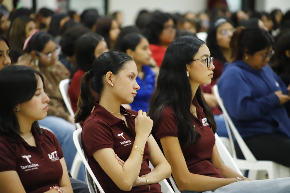 Reynosa, Tamaulipas.– Para que las y los estudiantes cuenten con mejores herramientas para su desarrollo académico en el ámbito de las ciencias e ingenierías, alumnas de diversas carreras que integran el Club STEM (Ciencia, Tecnología, Ingeniería y Matemáticas) de la Universidad Tecnológica de Tamaulipas Norte (UTTN), organizaron la conferencia Inteligencia Emocional, impartida por la especialista Ana María Cantú Solís.