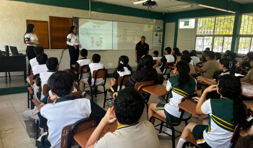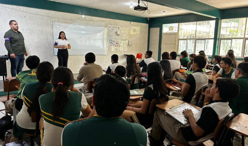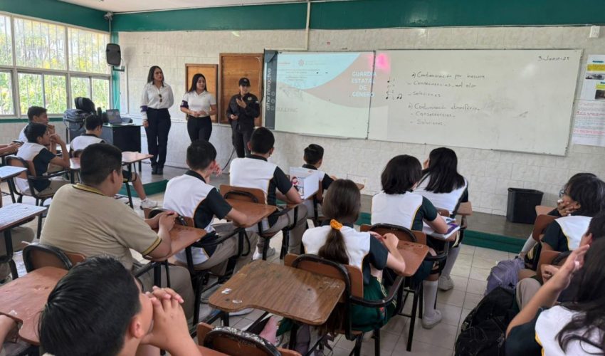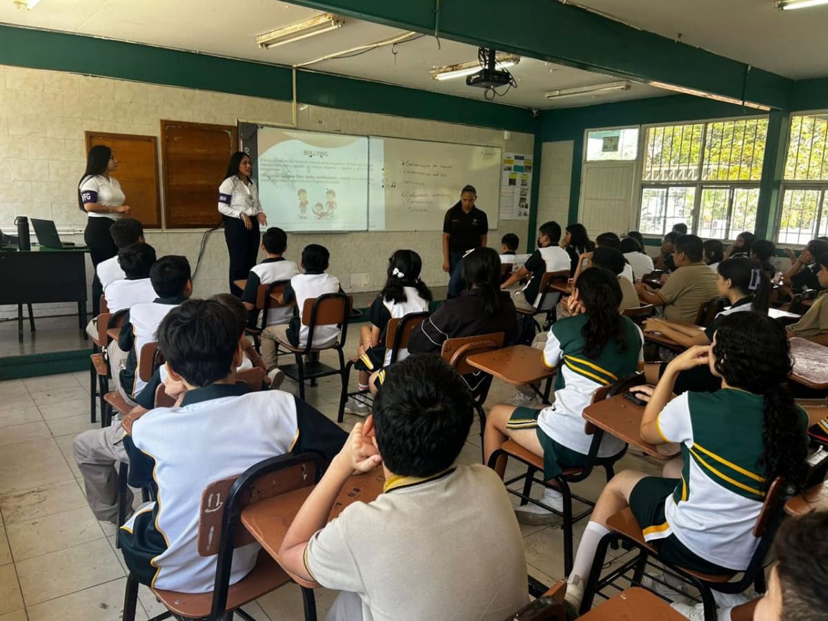 Ciudad Victoria, Tamaulipas. – Dentro de la estrategia integral para prevenir la violencia en diferentes ámbitos, personal de la Guardia Estatal de Género acudió a la Escuela Secundaria General Número Uno “Presidente Ruiz Cortines” de Ciudad Victoria para brindar pláticas informativas.