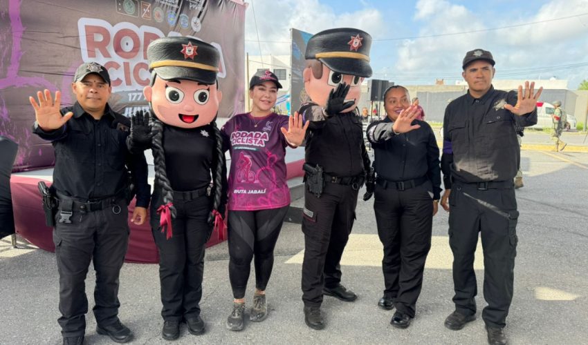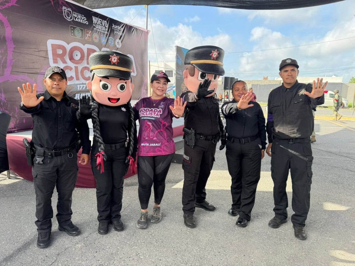 Nuevo Laredo, Tamaulipas.- Dentro de las acciones para reforzar la cercanía con la población del municipio de Nuevo Laredo, personal de la Guardia Estatal de Género participó en una rodada ciclista celebrada en esta ciudad fronteriza.