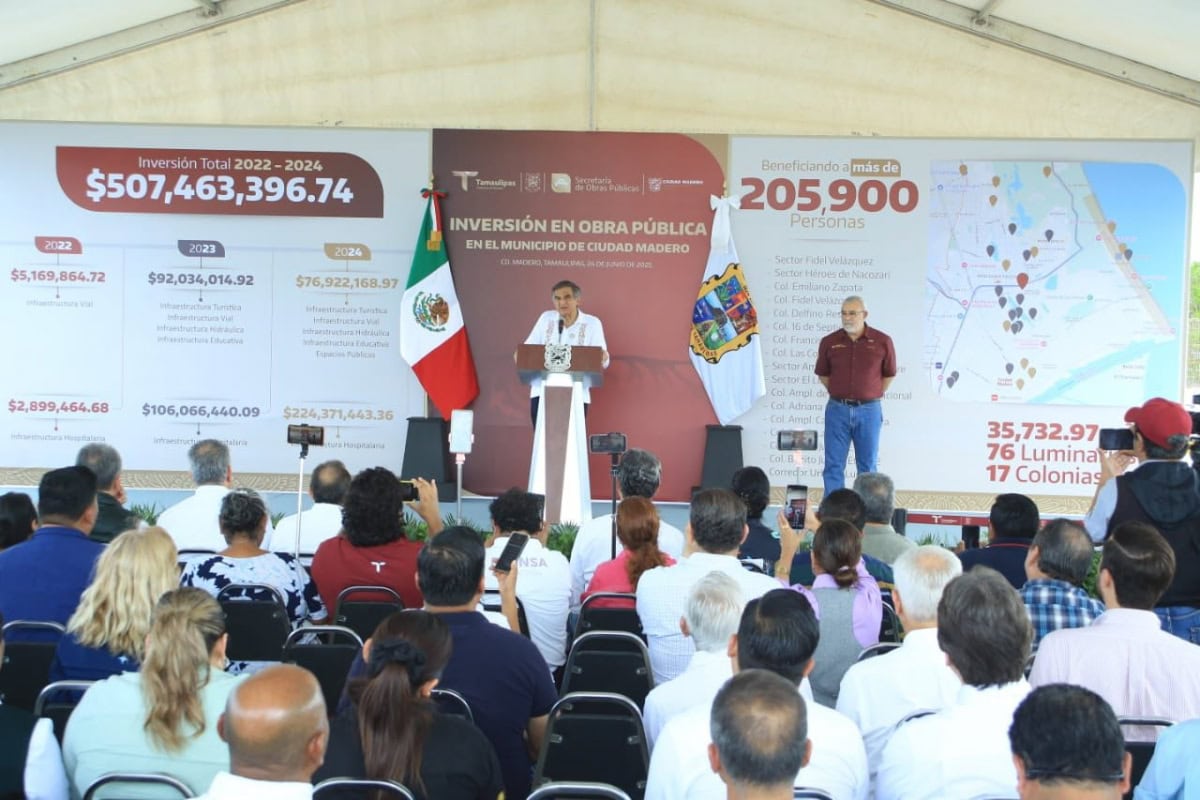 Aquí mismo, y en conferencia de prensa, Pedro Cepeda Anaya, secretario de Obras Públicas, dio a conocer que, desde octubre de 2022 a diciembre de 2024, el Gobierno del Estado destinó una inversión de poco más de 507 millones de pesos solo en obra pública para Ciudad Madero.