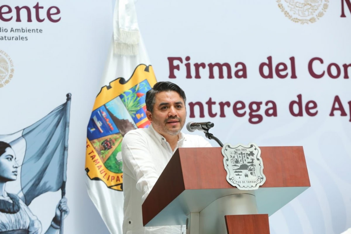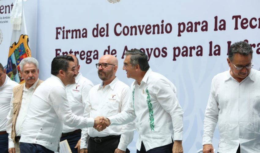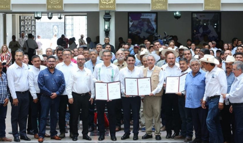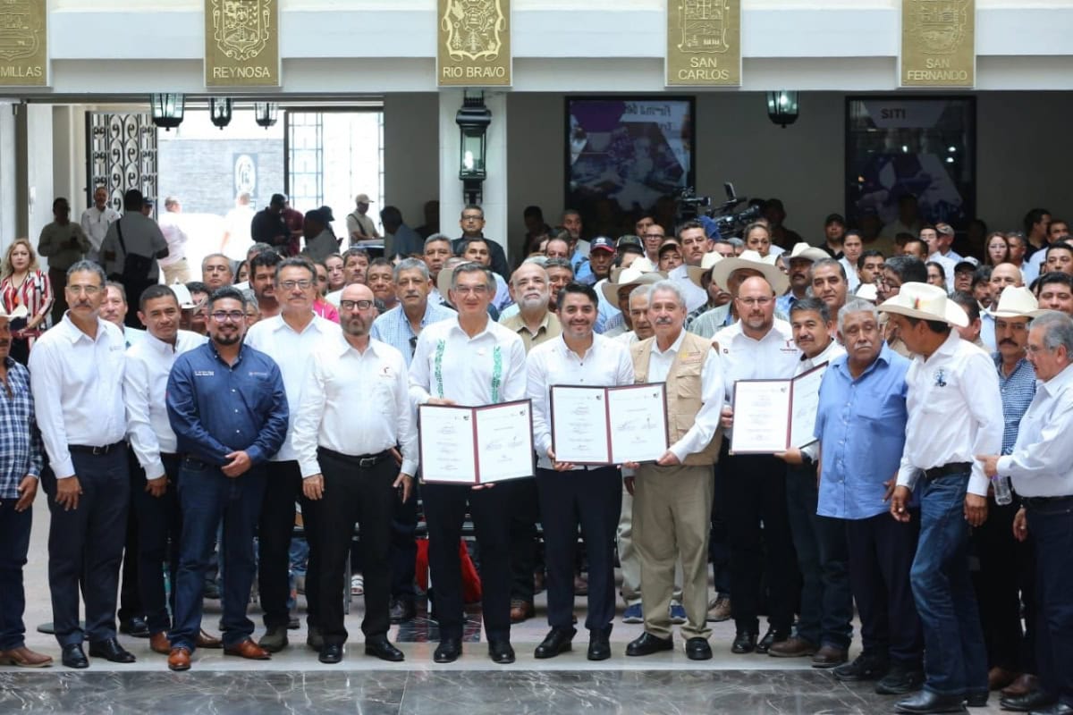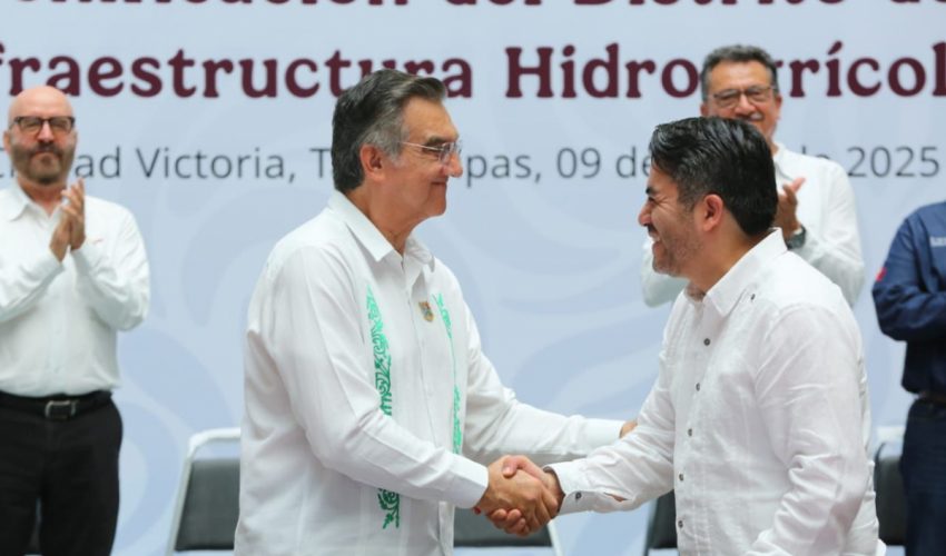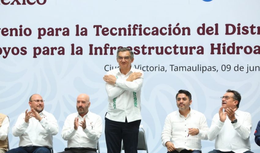 Ciudad Victoria, Tamaulipas.- En un hecho histórico y trascendental para la modernización del campo tamaulipeco, y en cumplimiento de uno de los 100 compromisos establecidos por la presidenta de México, Claudia Sheinbaum Pardo, orientado a tecnificar más de 200,000 hectáreas para riego agrícola, este lunes se firmó el Convenio para la Tecnificación del Distrito de Riego 025 Bajo Río Bravo, por el director general de la Comisión Nacional del Agua (Conagua), Efraín Morales López, y el gobernador de Tamaulipas, Américo Villarreal Anaya. Además, se llevó a cabo la Entrega de Apoyos para la Infraestructura Hidroagrícola en el estado con un monto de 388 millones 206 mil pesos.