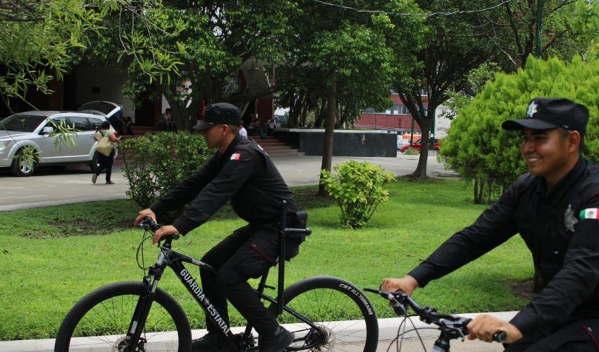 Ciudad Victoria, Tamaulipas.- Integrado por 20 elementos, el Agrupamiento Ciclista “Correcaminos” de la Guardia Estatal preserva la seguridad en la zona centro de Ciudad Victoria, a través de patrullajes en bicicleta.