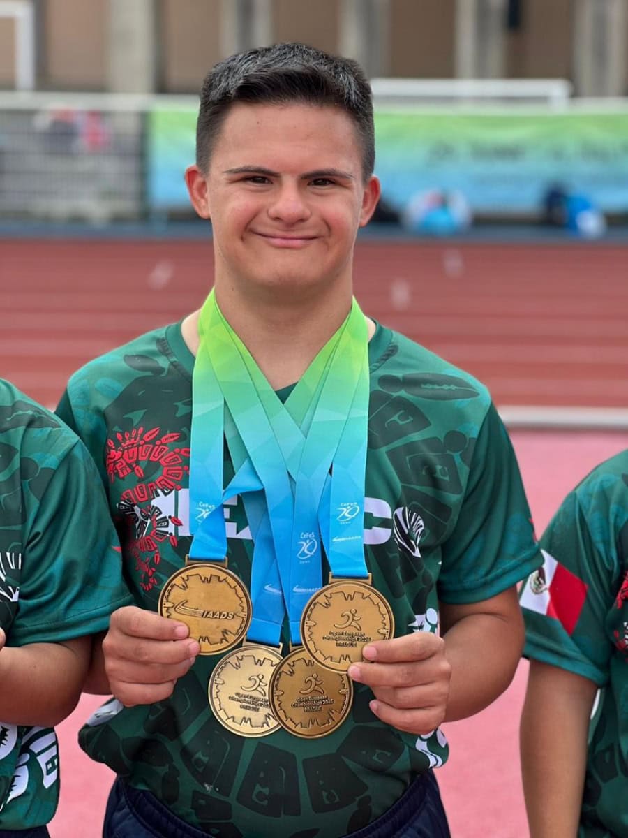 Ciudad Victoria, Tamaulipas.- El atleta tamaulipeco Alejandro Avilés, conocido como “La Flecha”, tuvo una destacada actuación en el Abierto Europeo de Atletismo para atletas con Síndrome de Down, donde conquistó cuatro medallas de oro y rompió dos récords mundiales en competencia que se realizó en Praga, República Checa.