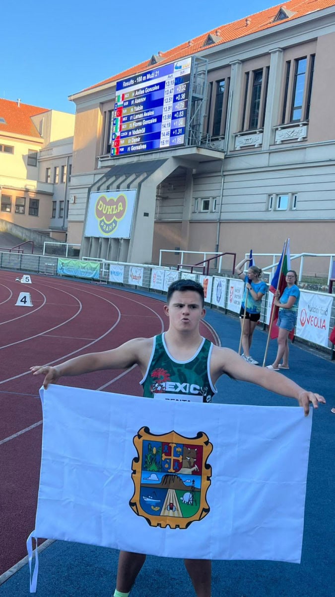 Praga, República Checa .- El atleta tamaulipeco Alex ‘La Flecha’ Avilés firmó una actuación histórica en el Abierto Europeo de Atletismo para atletas con Síndrome de Down, al conquistar dos medallas de oro y romper récord mundial en la prueba de los 100 metros planos.