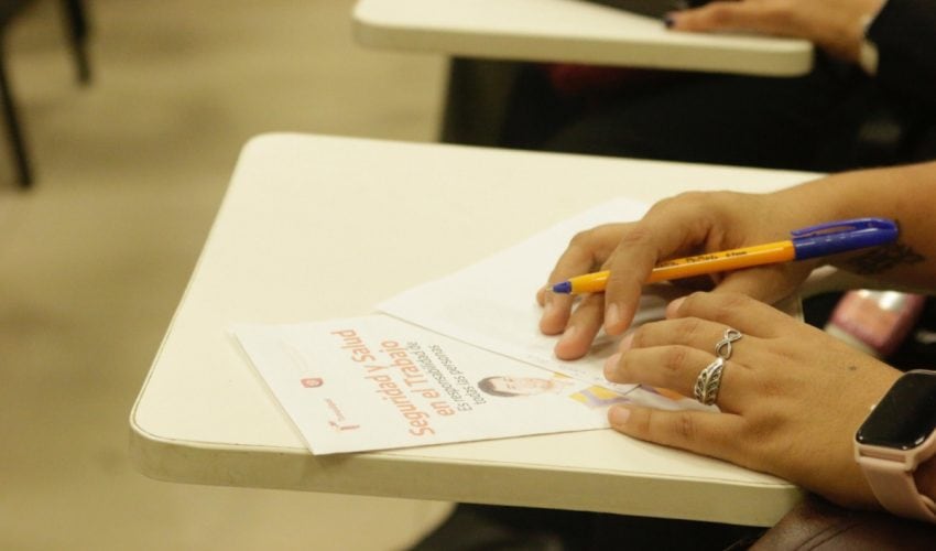Esta actividad fue desarrollada por la Dirección de Inspección y Previsión Social, a cargo de Claudia Yazmín Villarreal Vázquez, quien destacó la importancia de brindar información clara, práctica y fundamentada sobre los derechos y obligaciones relacionados con el uso de sillas en actividades que requieren permanecer de pie durante periodos prolongados.