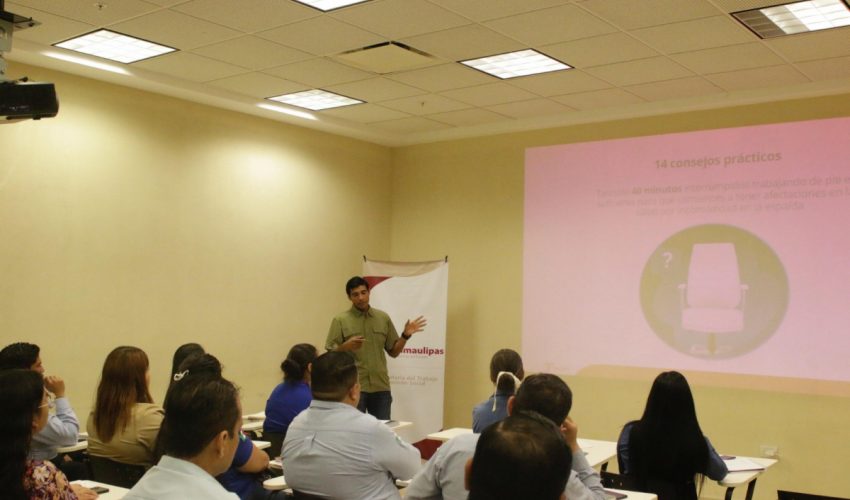 Ciudad Victoria, Tamaulipas.- Con el objetivo de fortalecer entornos laborales más seguros, dignos y saludables, la Secretaría del Trabajo y Previsión Social de Tamaulipas, que encabeza Luis Gerardo Illoldi Reyes, llevó a cabo una jornada de capacitación dirigida a diversas empresas de Ciudad Victoria sobre la conocida “Ley Silla”, enfocada en las condiciones ergonómicas en los centros de trabajo.