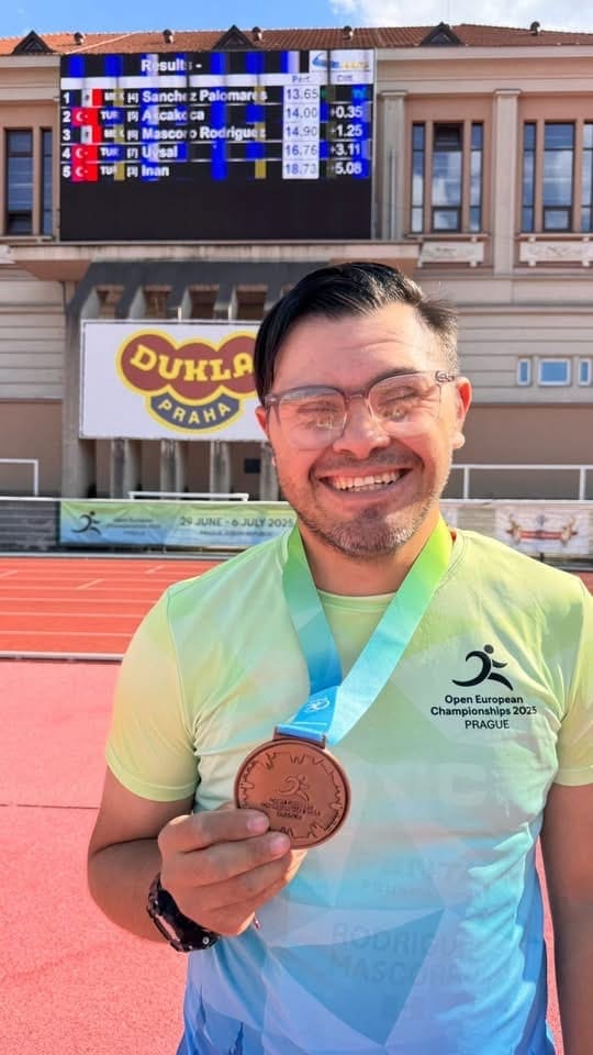 Praga, República Checa.- El tamaulipeco Juan Daniel Rodríguez Mascorro tuvo una participación sobresaliente en el Abierto Europeo de Atletismo para atletas con Síndrome de Down, que se realiza en Praga, República Checa, donde logró un total de cuatro medallas en tres días de competencia dentro de la categoría libre, consolidándose como uno de los representantes más destacados de México en esta disciplina.