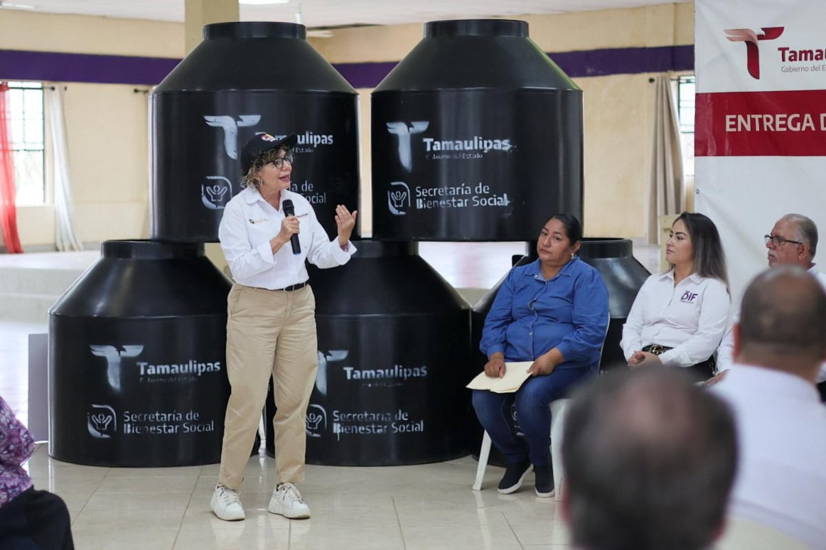En este evento, tras la entrega simbólica de 100 tinacos para el almacenamiento de agua potable con capacidad de 750 litros, así como de 510 paquetes alimentarios y de la puesta en marcha del proyecto Empleando tu Bienestar, la titular de SEBIEN, Silvia Casas González, al hacer uso de la voz reiteró la instrucción del gobernador Américo Villarreal Anaya, de ser pueblo sirviendo al pueblo, por lo que exhortó a las y los gestores y a todo su equipo de trabajo, a ser representantes empáticos y solidarios al realizar su desempeño.