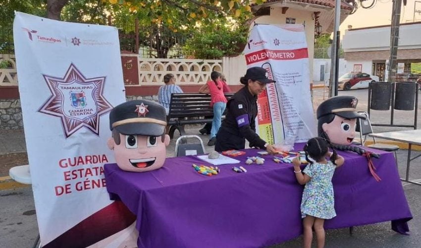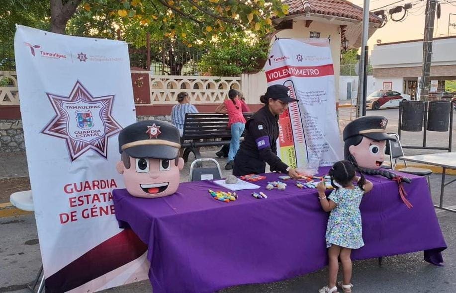 Ciudad Victoria, Tamaulipas.- Dentro de la estrategia preventiva del delito y la violencia familiar, personal de la Guardia Estatal de Género instaló un módulo informativo en la calle Francisco I. Madero de la Zona Centro de Ciudad Victoria.