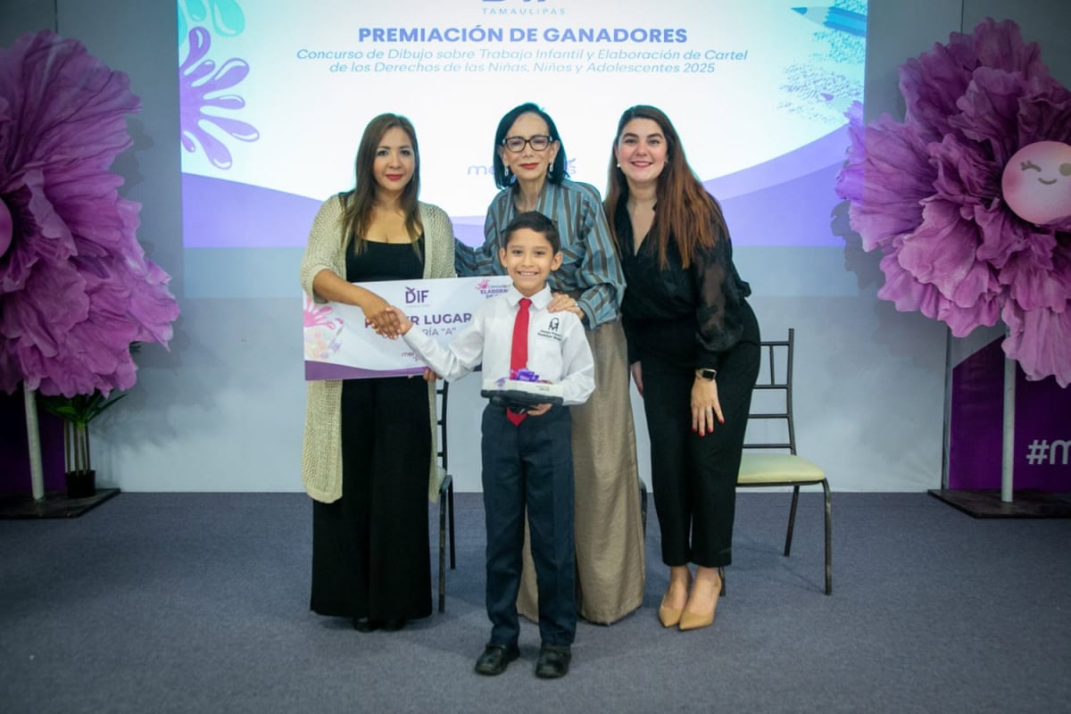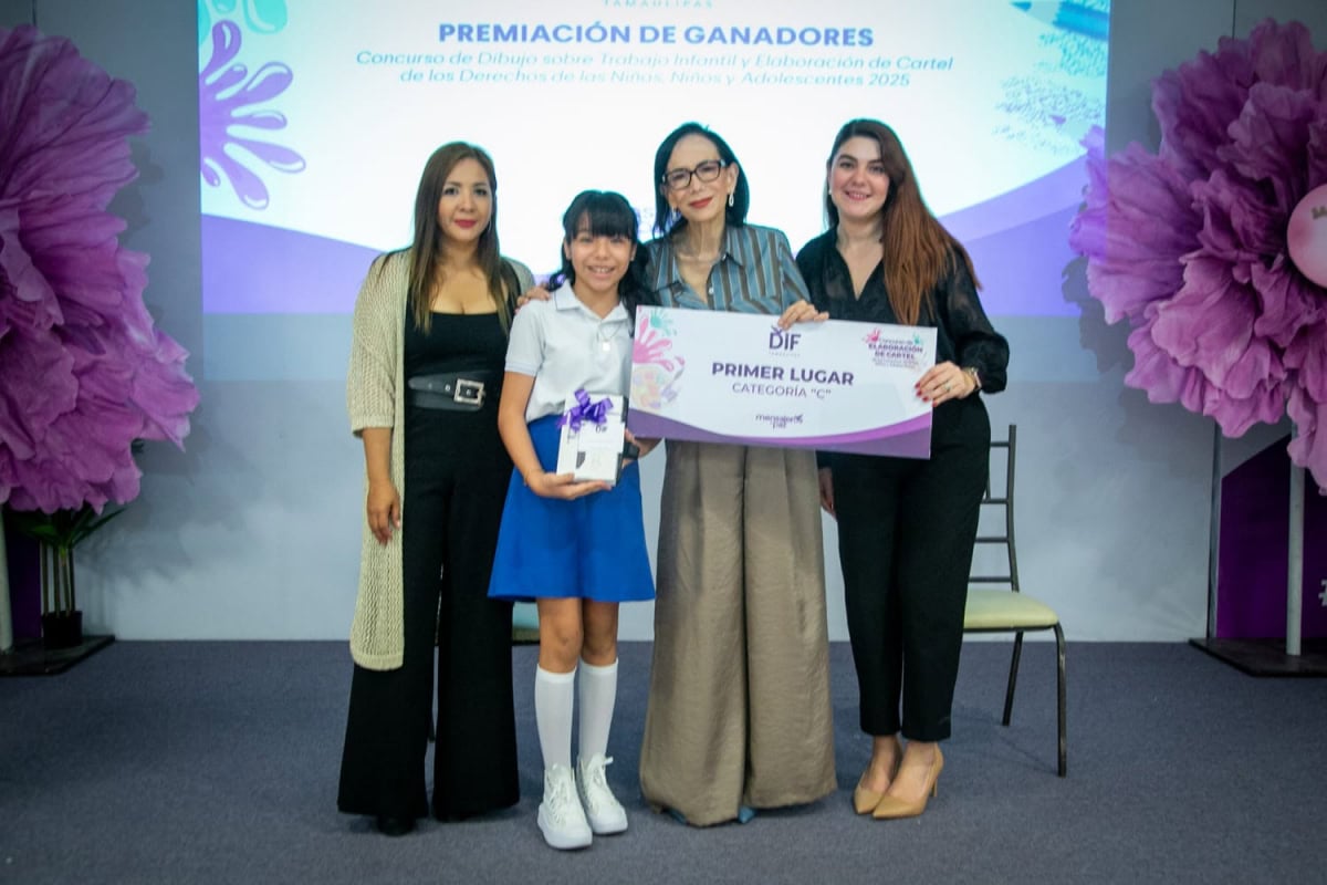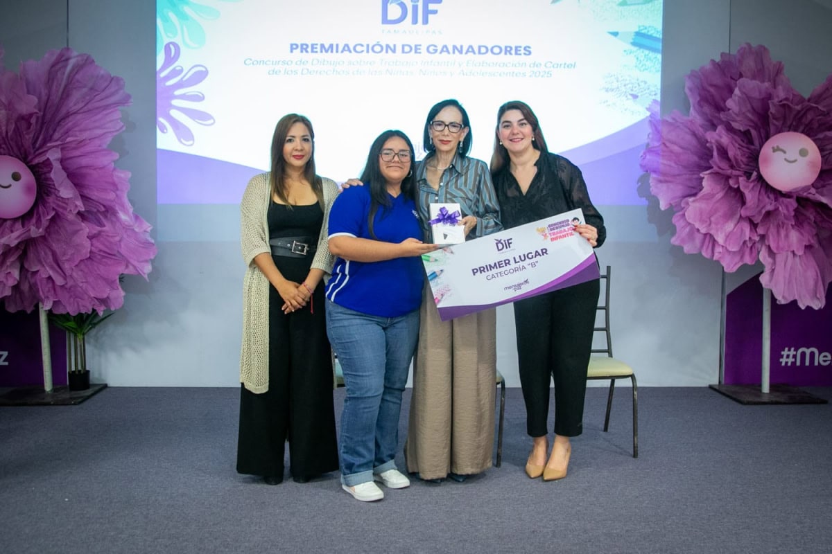 Ciudad Victoria, Tamaulipas.-El Sistema para el Desarrollo Integral de la Familia de Tamaulipas, presidido por la doctora María de Villarreal, llevó a cabo la premiación de los concursos de dibujo sobre trabajo infantil y de carteles sobre los derechos de niñas, niños y adolescentes 2025, cuya convocatoria, lanzada en el mes de marzo a todos los municipios del estado, generó la participación de mil 829 obras.
