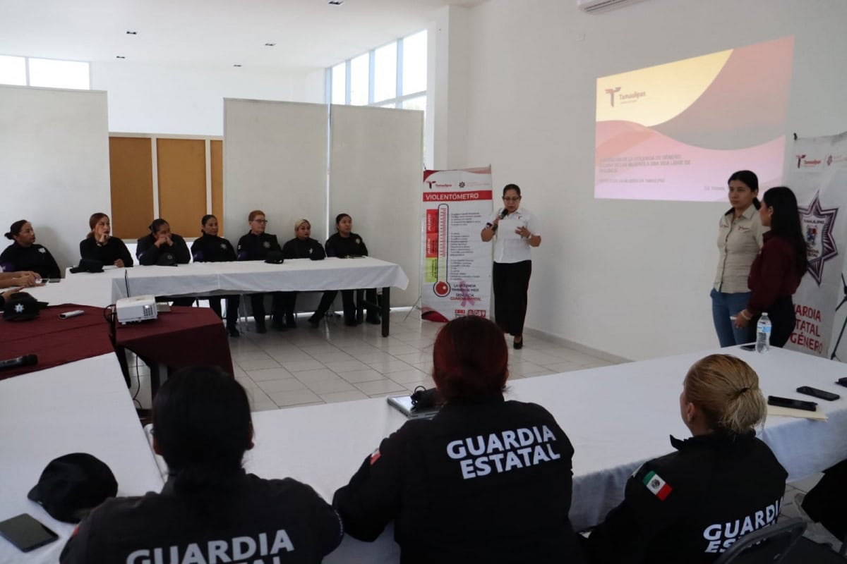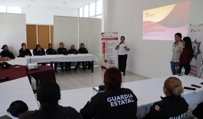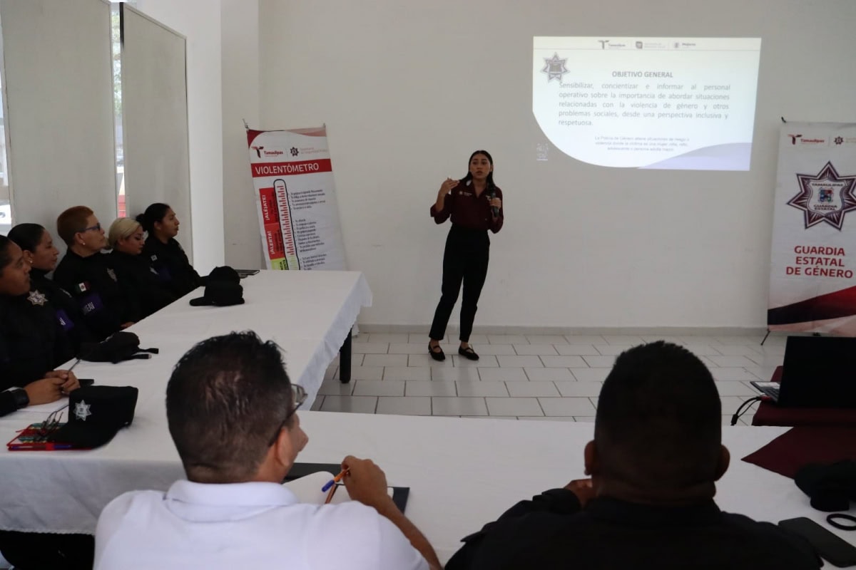Ciudad Victoria, Tamaulipas.- Con base en el compromiso de capacitación constante del personal de la Secretaría de Seguridad Pública de Tamaulipas (SSPT) integrantes de la Unidad Móvil Especializada de Atención a la Violencia (UMEAV) recibieron una capacitación impartida por profesionales del Instituto de las Mujeres en Tamaulipas (IMT).