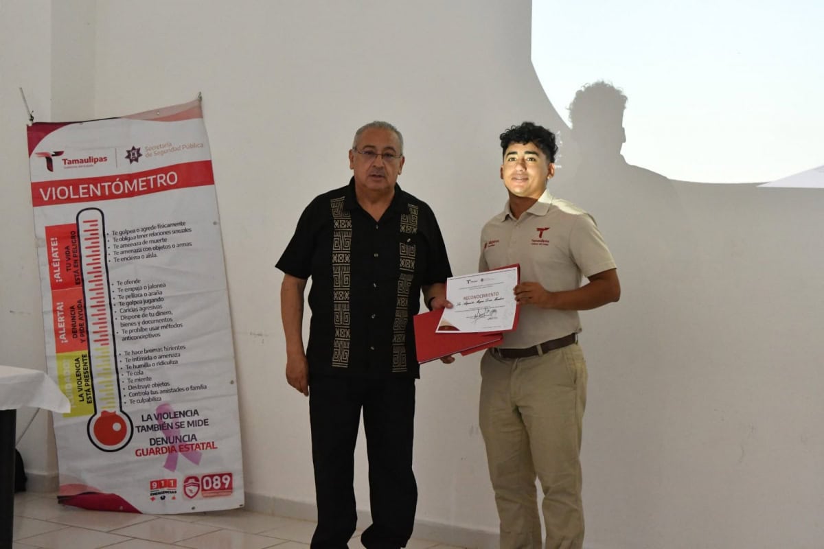 En agradecimiento a su participación, el subsecretario de Operaciones de la Guardia Estatal, Alex Melgarejo Torres entregó constancias a los facilitadores: Estefanía Dávila Cruz, Alejandro Magno Doria Mendoza y Jessica Berenice Carrizales, quienes acudieron en representación de la titular del IMT, Marcia Benavides Villafranca.