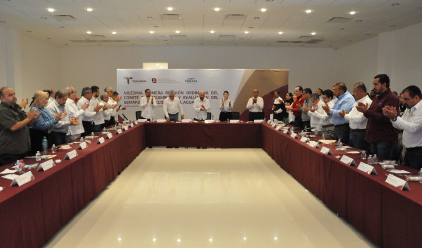 Nuevo Laredo, Tamaulipas. – Durante la vigésima primera reunión ordinaria de seguimiento y evaluación del Semáforo del Cuidado del Agua, la Secretaría de Recursos Hidráulicos de Tamaulipas presentó la actualización de colores en los 43 municipios del estado, como parte del balance hidráulico justificativo.