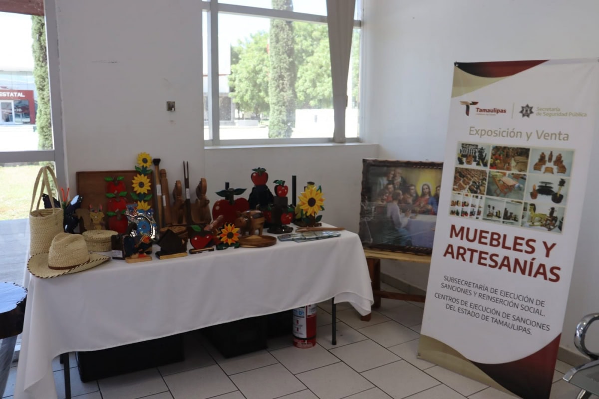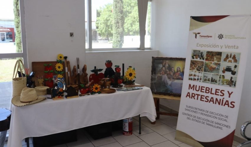 Ciudad Victoria, Tamaulipas.- Con la finalidad de apoyar la reinserción social de las personas privadas de la libertad (PPLs), la Secretaría de Seguridad Pública de Tamaulipas (SSPT) lleva a cabo una exposición y venta permanente de artículos elaborados en los Centros de Ejecución de Sanciones (CEDES) de la entidad al interior del Complejo Estatal de Seguridad Pública.