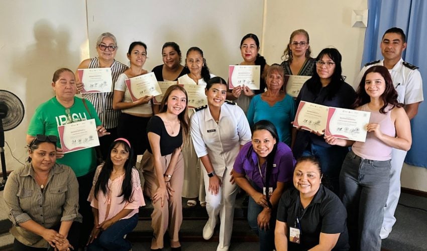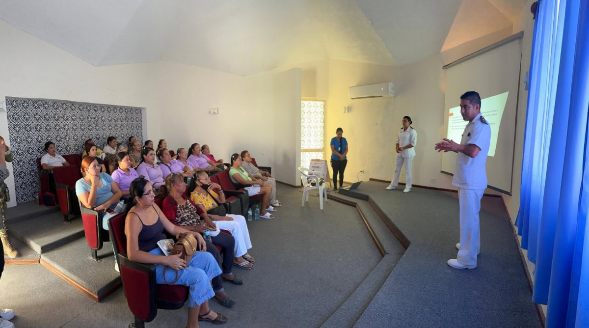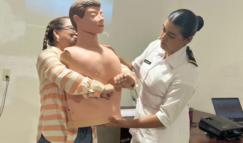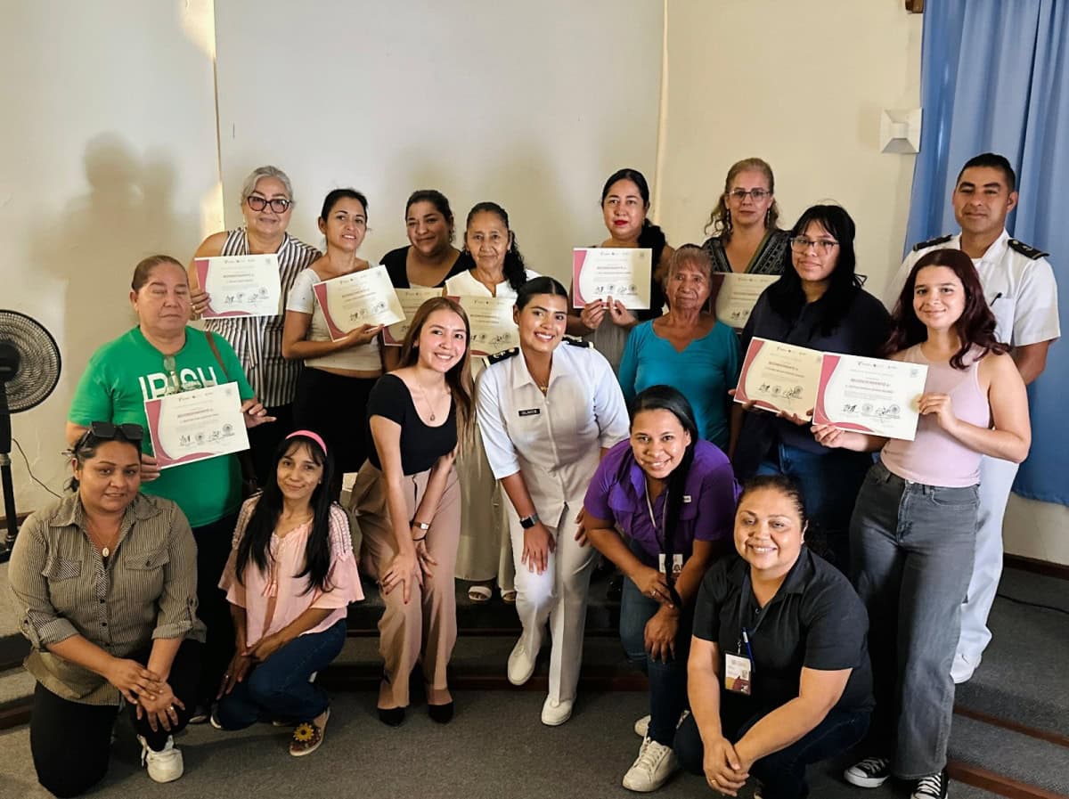 Las asistentes recibieron instrucción teórica y práctica en técnicas básicas de primeros auxilios, impartida por instructores de la Secretaría de Marina Armada de México y paramédicos de Protección Civil municipal.
