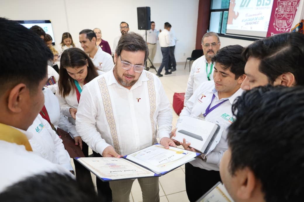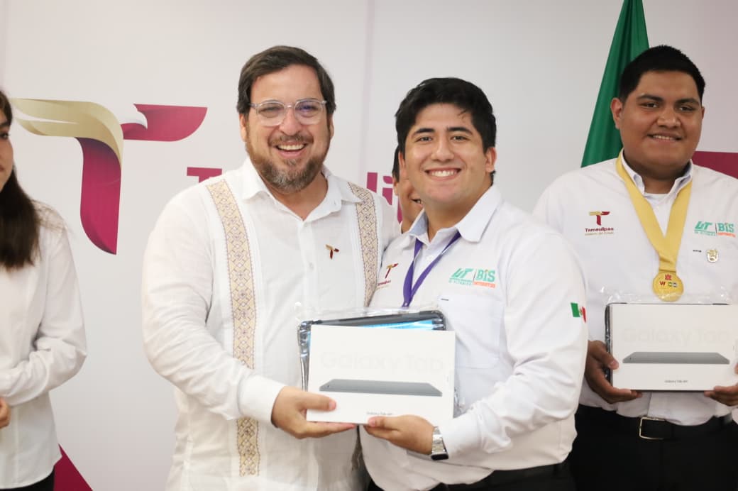 Como parte de esta jornada, Valdez García entregó cinco tabletas a los equipos de KID-IA y TERRA, reconociendo su esfuerzo y trayectoria, para posteriormente participar en la grabación del podcast Dragoncast, realizado desde la Sala Gesell, donde compartió su visión sobre el futuro de la educación en Tamaulipas.