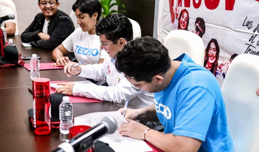 Ciudad Victoria, Tamaulipas.- El Instituto de la Juventud de Tamaulipas (INJUVE) y la organización TECHO México, firmaron un convenio de colaboración que permitirá desarrollar un trabajo conjunto promoviendo el voluntariado en las y los jóvenes de entre 18 y 29 años de edad para fortalecer su formación y desarrollo humano.